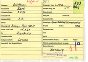 Zuname Krlegsgr. Liste Nr. Vornamen Geburtsdatum Geburtsort Sarg Nr. Nationalität Grabbrief Nr. Beruf Grablage: .· Dienstgrad Bezirk Feuer Nr. ()jt;tt.t9~e }I /II' Reihe Gest. /Gef. am Exhumiert am ln von Todesursache nach beigesetzt als Grabzeichen: Kreuz Anschrift der Angehörigen Öffentl. gepflegtes Grab ja/Aefn Stele .• '!<'· ' ... . / IId. j ä h~ich 0 vom Bund oner~onnl . •. ~~••~ 1959