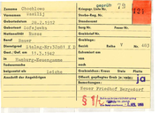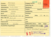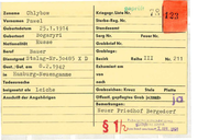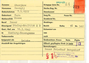 .~ ~ epr:üft n F.. Chorjkow Vornamen Geo r gi j Geburtsdatum 7.5 .1 922 Geburtsort Tura Nationalität Russe Zuname r=== Ö ·· t Kriegsgr. Liste Nr. ~- --· -----< Sterbe-Rag. Nr. - - - -- -- Standesamt __,.; Sarg Nr. Grabbrief Nr. 1l Todesursache nach beigesetzt a ls Grabzeichen: Krau:z Anschrift der Angehörigen lJ Grablage: Bezirk vr Reihe Nr. 542- . Exhumiert am I Stele öffentl. gepflegtes Grab ja~~ Bemerkungen: ~ ,."...., 1 von Lei Qhe '----" Feuer Nr. Bauer Dienstgrad St a l ag-Nr : 31298 X D Gest. / Gef. am 16 . 3. 1942 in Hamburg- Neuengamme Beruf 29 Platte ... l J~ Neue r Friedhof Ber gedorf ,.. j l At j •h~.'~.c~l. e nl,cilC.d ''l" ~ ~ • . .. . ·/-.lld...fö lfc9J"'danerl:an.tl.~t'Ü., 1.9§!!, I