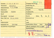 geprüft Zuname Krlegsgr. Liste Nr. Vornamen Sterbe· Reg. Nr. Jt?. .4,;1() 'e Geburtsdatum Geburtsort Nationalität J). ~· Grabbrief Nr. Grablage: )t? %lf Dienstgrad Bezirk Gest./ Gef. am Exhumiert am ln von Todesursache nach belgesetzt als Grabzeichen : Kreuz Anschrift der Angehörigen Öffentl. gepflegtes Grab ja/Mfft Reihe Stele Bemerkungen: 3