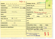 2.Aif J I r."t./• D Zuname Vornamen Geburtsdatum c k e r Carl Hermann -62 a= CJ.t ri e s-. ~ . u n l'! dtsch . Nationalität Feuer Nr. E ~gy.., ~1-~----J L Grabbrief Nr. vt Bulr:k Dienstgrad 8 . 4 .45 Gest./Gef. am Hamb llrg-Loksted t Todesursache BO belgesetzt als Le i che Anschrift der Angehörigen V9~' 6~ IV o/c.'rw l la Reihe . Nr. Exhumiert am von nach Grabzeichen: Kreuz Stele Öffentl. gepflegtes Grab Ja/mil'li Bemerkungen: Neu.•;:r. Platte C) ..~4 ~\i\t.l.'\~~ ~~. '~.. .!!' rie dhof Ru h o r e ch t se n 1s eh öd I g ung .. 20 fadl } ua::lalnlidi vom Bund anerkonnt.6,.AU~9 r 1G Standesamt ~blage: Beruf ~ Sterbe·Reg. Nr. Sarg Nr. Geburtsort in Krlegsgr. Liste Nr. pruft Ni end orf §1 5 -
