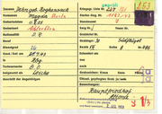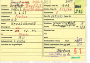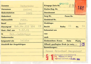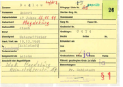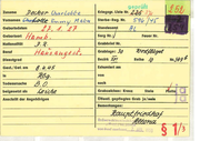 gepr Zuname Krlegsgr. Liste Nr. 22-7 Vornamen Sterbe·Reg. Nr. /14~ 2 / Geburtsdatum Standesamt !7 Sarg Nr. Feuer Nr. , Geburtsort ·1 Nationalität Grabbrief Nr. Beruf Grablage: Dienstgrad Bezirk .fiii Gest./ Gef. am Exhumiert am ln von " Todesursache belgesetzt als y -~ }t' Reihe Nr./f/6 nach Grabzelchen: Kreuz Stele Anschrift der Angehörigen ,,;~~~·'!.'<"" :! lfd. jährlldt vom Bund ouerkonnt•••••Z~ 1959