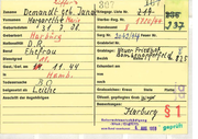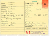 .. Demidow Zuname - W asi l iJ Vornamen Geburtsdatum 3 .3. 19 12 Kost enki Geburtsort Nationalität Russe Beruf Kraftfahrer --- Dienstgrad St a l ag-Nr: 34 487 XD ~ Gest. / Gef, am 3 • 2. 1942 Hamburg-Neuengamme ~ in ~ Todesursache ' - beigesetzt als t. ' geprüft Kriegsgr. Liste Nr. Sterbe-Reg. Nr. --:; r, n 141 _ __) ...._ .,~ -- Standesamt Sarg Nr. Feuer Nr. - Grabbrief Nr. - Grablage : Bezirk Reihe Exhumiert am I II 177 - Nr. -- - - von I nach Lei che Grabzeichen: Kreuz Stele Platte ~- öffentl. gepflegtes Grab ja I nlU~X : Anschrift der Ange hörige n Bemerkungen: ~ ) Q ' .- Neuer Fri edhof Bergedorf It . .. - 9l , . . ~·Lo (.;<~t:·~·;t;;"! IId. lci_:u~<dr ~)i) . vom ~"" J >nert-nnni-·.Af.E...J~ 1-