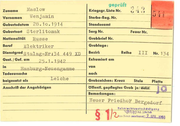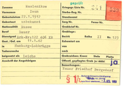 geprü t Masleni kow -- - I wan Vornamen ---- Geburtsdatum 2 2 • 1 • 19 12 Ge burtsort unbekannt Nationalität Russe Beruf Bauer -- - - Dienstgrad Er k-Nr: 122 4:Q6 XB 11.1. 42 Gest. I Gef. am Hamburg-Lohbrügge in von Todesursache nach Zuname - - beigesetzt als Leich e ~ ,: Kriegsgr. Liste Nr. - - t i --~---- Sterbe-Reg. Nr. Standesamt Sarg Nr. Feuer N r. - Grabbrief Nr. Grablage : Bezirk Rei h e II Exhumie rt am Nr. 123 ----- Stele öffe ntl. g e pfleg tes G rab ja 1 IY~i'{ Bemerkungen : - 53D --------------J Grabzeich e n: Kre uz Ansch rift der Ang e hörig e n 'T Platte jO Neue r Friedhof Bergedorf - -g ~/0 lu.b..uac bt . . IIIS l:b ldlfilllftl ·~ lfd. lältrtlt ~om Bund c$.mnllt_ :..t.W, 1111