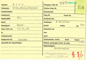 .K 0 c k s c h Zuname Vornamen Otto Herrn . ' Krlegsgr. Liste Nr. Standesamt Geburtsort Sarg Nr. Dt . Dienstgrad Schütze Bezirk Gest./ Gef. am 21 . 1 .1 9 Exhumiert am ln von Todesursache nach belgesetzt als Le ic he pr r~ 2.i 7 I Feuer Nr. Grabbrief Nr. Grablage: Beruf ~ ,~ Sterbe · Reg. Nr. Geburtsdatum Nationalität f ', ...i _; ,- H Mili t ä r Re ihe Grabzeichen: Kreuz 356 Nr. Stele Platte ~ Anschrift der Angehörigen Öffentl. gepflegtes Grab ja / nein J Bemerkungen: Di e bst eic h Ru b e re cb 15 o o 1Hh ä a1 ·20fot h 1 . .. vom ßund o norkannt .... .. ~:.M~~;.. '959 I •;u j ~ ~ . fI