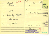 I Zuname Vornamen ~ck batfe 71- Geburtsdatum ' ("" --1J,l; S". 9 9 J) ~ · Nationalität ~ ~g Krlegsgr. Liste Nr. ~ t= Sterbe·Reg. Nr. Standesamt Sarg Nr. Geburtsort Feuer Nr. Grabbrief Nr. Grablage: ?Zt?(t(Jr lfi~dr!Pf tfl~njl'·äJ{;(.alj Beruf Dienstgrad '"~ ' ~ftscht.,'fj!~ m-~~. 3 Gest./ Gef. am ln .-ttJ. 1· -11._ lta7'- rJ..u r-9'- Reihe Nr. 11)~ Exhumiert am von nach Todesursache beigesetzt als Bezirk kttclie Anschri ft der Angehörigen Grabzeichen: Kreuz Stele u ~~~ öffentl. gepflegtes Grab ja / ttekt _~emerkungen Ruhorochts e n tschödlgu · 20 fc dl l -..~ . ..;;]'t4\;.'(•1· ·~ --, dCCL?!:_6U 7'-!J . Platte" >~ ·' vom Bund onllrkannt~,.-ALLG.J.959 9 ·~ . gepruft