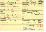 J'·'l-~1 ru( Zuname --K on 0-'Z..O-W- - - - Vornamen Fedor Geburtsdatum 1 • 1 • 19 1 5 Geburtsort Nationalität - L.:. ___ _J 403 --------; Moskow Russe I Sarg Nr. Feuer Nr. Grabbrief Nr. Dre her -- - - - - Dienstgrad St alag-Nr : 3o8 o7 X D 16 .3. 1942 Gest. 1Gef. am IIamburg- Neue ngamme Grablage: Bezirk VI Re ihe Nr. 54o Exh u miert am von nach Todesursache - Lei che beigesetzt a ls Grabzeichen: Kreuz Ste le öffentl. gepflegtes Grab ja OrtJt~ Anschrift der Angehörigen Bemerkungen: -- I Standesamt Beruf in (. • Kriegsgr. Liste N r. Sterbe-Reg. Nr. - ·' ""' ;, - ... ('! -- Pl atte Ja Neue r Fr i edho f Berged or f ~§ 1 D . ......... ,,.nhdaAdtavna ~~ . ,._lld. te~1~ om Bund ~.::'.J:.AfL 195~ -