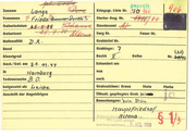 A..'f-f~ 3 t'otnct?!f'~hr fl~ f>-eef:z Zuname JJ~~nt~a M~~~ Vornamen Geburtsort 2. ( . 6' {' .}. Nationalität Beruf L.J.-.__ Dienstgrad Gest./Get. am in Todesursache belgesetzt als f~)'7~H-... u-nd-. Geburtsdatum nm;<f,. ~ .f ~ --lf.-11 • Ii- 41- ~~~~.. f· 23 IJ " .tet-C..h~ Anschri ft der Angehörigen Kriegsgr. Liste Nr "' Sterbe·Reg. Nr. t Standesamt I .7 {I, t) ." .:c ~· 1013 ~ Sarg Nr. /JJ6 / /;f Jf 2 / y,J r:: , , .. \ tJ .r Feuer Nr. I Grabbrief Nr. Grablage: Bezirk ?ld'cte7' fr-ti9dM~ ~ ~ 9tPnoq~~~ ~ Nr. 6J3 Reihe Exhumiert am von nach Grabzeichen: Kreuz Stele Plattef Öffentl. gepflegtes Grab j a / AeJit '"' Bemerkungen: ) M•Jt1t. ~ b.;J 11 :J'I.-Cl ~c;..u. 'Jt.O lthr...U•IIItl'cllfdleunt -»lUdi ' 11 u an,.:. · VOI!IIIund anerkonni..... $ 1 CJl u 1959 9eprüft ~