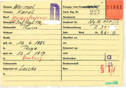 Kriegsgr. Liste Nr. 11644 Sterb. Reg. Nr. Standesamt Grabbrief Nr. Oien ------------~~~~~-------------1 Grabbezeichnung Sekt. Straße Oberführt am geb. am von ln Exhumiert am gesf. am nach ln Denbeiehen Todesursache Bundenuschuß beigesetzt als ln ~ Bem. Block Nr.