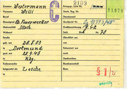 2 '' 09 Kriegsgr. liste'l4r. J~1 S78 Vorname Sterb. Reg. Nr. Beruf Standesamt Dienstgrad Grobbrief Nr. Nationalität Grabbezeichnung Wohnort Sekt. Straße Oberführt am geb. am von in Exhumiert am gest. am nach in Denkzeichen Todesursache Bundeszuschuß in B