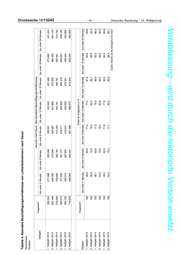 Deutscher Bundestag – 18. Wahlperiode – 17 – Drucksache 18/13245 Vorabfassung - wird durch die lektorierte Version ersetzt. Tabelle 5: Median der monatlichen Bruttoarbeitsentgelte von sozialversicherungspflichtig Vollzeitbeschäftigten der Kerngruppe Deutschland Stichtag: 31.12.2003 darunter: 74502 Überlassung von Arbeitskräfte (WZ Insgesamt 2003) Berichtsmonat Polit Gebiet AO Geschlecht Alter mit Angabe zum mit Angabe zum Insgesamt Median in Euro Insgesamt Median in Euro Entgelt Entgelt Insgesamt 19.880.615 19.276.781 2.525 274.172 256.991 1.330 unter 25 Jahre 1.542.311 1.461.368 1.776 57.529 52.758 1.161 Insgesamt 25 bis unter 55 Jahre 16.493.520 16.010.013 2.592 205.353 193.472 1.377 Insgesamt 55 bis unter 65 Jahre 1.795.297 1.758.403 2.695 11.089 10.585 1.564 65 Jahre und älter 49.487 46.997 1.220 201 176 X Männer Insgesamt 12.643.369 12.313.953 2.731 203.026 191.051 1.354 Frauen Insgesamt 7.237.246 6.962.828 2.148 71.146 65.940 1.245 Westdeutschland Insgesamt Insgesamt 16.032.980 15.536.525 2.642 216.861 202.259 1.374 01 Schleswig-Holstein Insgesamt Insgesamt 557.803 537.389 2.412 6.390 6.104 1.360 02 Hamburg Insgesamt Insgesamt 559.646 541.902 2.903 11.745 10.804 1.489 03 Niedersachsen Insgesamt Insgesamt 1.705.480 1.653.736 2.489 24.971 23.186 1.446 04 Bremen Insgesamt Insgesamt 202.489 196.922 2.758 3.440 3.220 1.499 31. Dezember 2003 05 Nordrhein-Westfalen Insgesamt Insgesamt 4.306.636 4.180.026 2.654 61.678 57.519 1.430 06 Hessen Insgesamt Insgesamt 1.588.968 1.524.082 2.786 19.537 17.653 1.422 07 Rheinland-Pfalz Insgesamt Insgesamt 841.610 815.417 2.537 11.144 10.374 1.302 08 Baden-Württemberg Insgesamt Insgesamt 2.832.985 2.751.863 2.746 32.094 30.080 1.305 09 Bayern Insgesamt Insgesamt 3.171.841 3.077.158 2.597 40.381 38.371 1.309 10 Saarland Insgesamt Insgesamt 265.522 258.030 2.594 5.481 4.948 1.305 Ostdeutschland Insgesamt Insgesamt 3.843.439 3.736.495 1.960 57.311 54.732 1.187 11 Berlin Insgesamt Insgesamt 764.964 736.531 2.458 9.891 9.223 1.132 12 Brandenburg Insgesamt Insgesamt 546.842 532.834 1.918 4.944 4.736 1.245 13 Mecklenburg-Vorpommern Insgesamt Insgesamt 375.701 365.317 1.832 4.158 3.962 1.260 14 Sachsen Insgesamt Insgesamt 1.030.989 1.008.297 1.840 18.205 17.604 1.171 15 Sachsen-Anhalt Insgesamt Insgesamt 572.357 557.046 1.885 10.306 9.890 1.241 16 Thüringen Insgesamt Insgesamt 552.586 536.470 1.806 9.807 9.317 1.166 Quelle: Statistik der Bundesagentur für Arbeit X) Aus methodischen Gründen ist ein Ausweis von Entgeltverteilungen oder Quantilen nicht sinnvoll, wenn die Zahl der Beschäftigten mit Angabe zum Entgelt unter 1.000 liegt.
