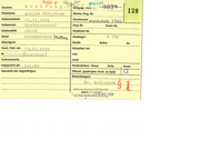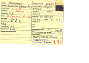 Zuname Steinki Vornamen Lrmgrid er geprüft, FR egsgr. Listen. en Sterbe-Reg. Nr. Standesamt Siek Nr. 128 Geburtsdatum 4.11.1943 Geburtsort Sarg Nr. Feuer Nr. Natlonalität atsch Grabbrief Nr. Beruf Kind (Fagdına) Grablage: O0 286 — — Dienstgrad Bezirk Reihe Nr, Gest./Get.am 17.4.1945 Exhumiert am in Sek. Todesursache von nach » Grabzeichen: Kreuz Stele Platte Öffentl. gepflegtes Grab ja/nein e Bemerkungen: J —_ Hr, kahlstedt Ruherechisentschädigung - Deren] fd. Jährlich vom Bund onerkannt..2.9, MAI 1960 Bu a beigesetztalı Leiche Anschrift der Angehörigen