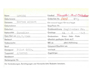 Name Friedhof Morton Albert Ehrenanlage/Streulage Geburtsname Vornamen Hauptf.-i - ..$~ ~f Ohlsdor Gräberliste Nr. tf.ftH § 1I 2 LOWICK Geburtsdatum Sarg/Feuer Nr. Geburtsort Grabbezeichnung Nationalität C anad i er I Gest./Gef. am 29 . 7 . 1 944 Engl i sehe r Fr . c Grablage 4A Grobzeichen : Kreuz - Stele - Plotte Sterbeort öffentlich gepflegtes Grab ab Todesursache RRE ab Beruf Exhumiert/Oberführt am ..c.D_ie'---n-'-st_",g_ra_d_---=P i von/nach Truppenteil Angehörige: l 0 t 0 f=--=f-=r'-'" =------- J / 8 8783 P jährl./Abfindung Standesamt Sterberegister Nr. Für Veränderungen, Berichtigungen und Vermerke bitte Rückseite benutzen. - 1 3