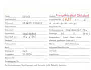 Name SPEAB Geburtsname Vornamen Friedhof Heu,tfritdhof Ohlsdorf Gröberliste Nr. Albert Clavey d l! ~ §1 / Ehrenanlage/Streuloge Geburtsdatum Sorg/Feuer Nr. Geburtsort Grobbezeichnung Nationalität Engländer Grobloge Gest./Gef. om 18 .1.1 943 Grobzeichen: Englischer Fr. c 4A öffentlich gepflegtes Grob ob P Todesursach e RRE ob Beruf Exhumiert/Oberführt om Truppenteil • 542000 . Kreuz - Stele - Plotte Sterbeort _D_ie_n_st""'"g_ro_d_ _ ___.Sg t 2 jöhrl./Abfindung von/noch Angehörige: Standesamt Sterberegister Nr. Für Veränderungen, Berichtigungen und Vermerke bitte Rockseite benutzen. 14-15