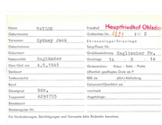 Name Geburtsname Vornamen TEAP:B'EY w. Friedhof Hauptfriedhof Ohlsdorf Gräberliste Nr. I{ 1/! ll § 1I 1 Ehrenanlage/Streuloge Geburtsdatum Sorg/Fe uer Nr. Geburtsort Grabbezeichnung Englischer Fr . c Nationalität Engländer Groblage I Gest./Gef. om 1 7 . 12 .1 917 Grabzeichen: Kreuz - Stele - Platte I Sterbeort öffentlich gepflegtes Grab ab P Todesursoche RRE ab Beruf Exhumiert/Oberführt am Dienstgrad Rfn . von/nach Truppenteil r"/37281 Angehörige: jährl./Abfindung Standesamt Sterberegister Nr. Für Veränderung en, Berichtigungen und Vermerke bitte Rückseite benutzen. 6