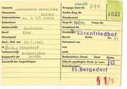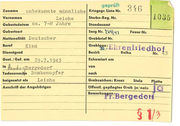 9eprütt unbekannte weibl. Leiche Zuname - -- - --- - - - - Kriegsgr. Liste Nr. _v _o _rn_a_m_e_n_ __ _ _--:---:::--------II - S -:--t_e_rb_e_-_R_e g _. N _ r.___ Geburtsdatum ca. j 0 J ahre Standesamt Gebu•t•o•t Nationalität So•g N•. Deutsche '!.$'\\ ~- 3 0~.3-. --1 ________ 1 () -/ '-~ - . :::_ - _j Feue, "''· Grabbrief Nr. - - -- - ·- ----- - - - Grab'i~~~ l:.Ll enft iedhof Dienstgrad Bezirk Reihe N - - - - - -- - - - - - - - - -1- - - - - - -- - - - - -~· )2 Gest. / Gef.am 29.7. 1943 Exhumiertam Beruf von in 1/61"" fo /-1 , fB ei'-ff€-dG-rl'-· nach Bombenopfer beigesetzt als Lei ehe--------,~~~~~~------ Grabzeichen: Kreuz Stele Todesursathe Anschrift der Angehörigen - - - - --- - _ ___ _ __ 1 öffentl. gepflegtes Grab ja / nein Bemerkungen: a JJ }I Fr.Bergedorr.r-- - - - - - - - -- 1-- - ----------- - - - - - - - - -