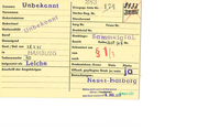 OU Kriegsgr. Liste Nr. It Zuname Unbekeonnt Vornamen . | Sterbe-Reg.Ntr. Geburtsdatum apt E Standesamt j E Geburtsort x 3 ort j Sarg Nr. Fever Nr, Nationalität “ Grabbrief Nr. Beruf i Grablage: S a mme] & ra h Dienstgrad i Bezirk Reitre 36.39 lg Nr. Gest. / Gef. am Exhumiert am HAMBURG Todesursache beigesetzt als Ro Leiche Anschrift der Angehörigen - 817 Siele Grabzeichen: Kreuz Platte iTAFm ee Ener pungssnnn Er Öffentl. gepflegtes Grab ja/nein l € 2 Bemerkungen: e ee "20 lach /ekiek-tötrrffeh mn, DOR oo