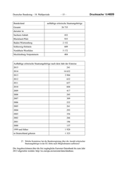 Deutscher Bundestag – 18. Wahlperiode – 15 – Drucksache 18/4609 Bundesland aufhältige eritreische Staatsangehörige Gesamt 26 735 darunter in: Sachsen-Anhalt 432 Rheinland-Pfalz 935 Baden-Württemberg 2 152 Schleswig-Holstein 609 Nordrhein-Westfalen 5 172 Mecklenburg-Vorpommern 404 Aufhältige eritreische Staatsangehörige nach dem Jahr der Einreise 2015 241 2014 14 632 2013 3 984 2012 632 2011 657 2010 604 2009 417 2008 285 2007 309 2006 222 2005 261 2004 293 2003 356 2002 266 2001 196 2000 137 1999 und früher 1 920 in Deutschland geboren 1 323 27. Welche Kenntnisse hat die Bundesregierung über die Anzahl eritreischer Staatsangehöriger in der EU (bitte nach Mitgliedstaaten auflisten)? Die Angaben können über die frei zugängliche Eurostat-Datenbank bis zum Jahr 2013 abgerufen werden: http://ec.europa.eu/eurostat/data/database.