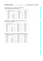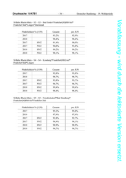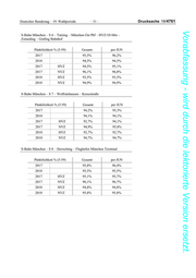 Drucksache 19/4761 – 32 – Deutscher Bundestag – 19. Wahlperiode Vorabfassung - wird durch die lektorierte Version ersetzt. S-Bahn Nürnberg – S 1 – Bamberg*Forchheim*Erlangen*Fürth*Nürnberg* Lauf*Hersbruck*Hartmannshof Pünktlichkeit % (5:59) Gesamt per JUN 2017 92,6% 92,6% 2018 95,2% 95,2% 2017 HVZ 91,6% 91,6% 2017 NVZ 93,0% 93,0% 2018 HVZ 95,1% 95,1% 2018 NVZ 95,2% 95,2% S-Bahn Nürnberg – S 2 – Roth*Schwabach*Nürnberg*Feucht*Altdorf Pünktlichkeit % (5:59) Gesamt per JUN 2017 97,8% 98,4% 2018 98,2% 98,2% 2017 HVZ 97,7% 98,4% 2017 NVZ 97,8% 98,4% 2018 HVZ 98,3% 98,3% 2018 NVZ 98,1% 98,1% S-Bahn Nürnberg – S 3 – Nürnberg*Neumarkt Pünktlichkeit % (5:59) Gesamt per JUN 2017 96,8% 97,1% 2018 97,3% 97,3% 2017 HVZ 96,2% 96,5% 2017 NVZ 97,1% 97,4% 2018 HVZ 97,1% 97,1% 2018 NVZ 97,5% 97,5%
