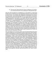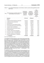Deutscher Bundestag – 18. Wahlperiode – 25 – Drucksache 18/734 Tabelle 17: Die zwölf Berufshauptgruppen mit der höchsten Anzahl an sozialversicherungspflichtig beschäf- tigten Frauen Anteil beschäftigte Sozialversich- Insgesamt Frauen in erungspflichtig Sozialversich- Berufshauptgruppen mit größtem Anteil Frauen Berufshaupt- Rang beschäftigte erungspflichtig nach der KldB 2010 am 30.06.2013 gruppe an Frauen am Beschäftigte am beschäftigten 30.06.2013 30.06.2013 Frauen insgesamt 1 2 3 Insgesamt 13.513.163 29.268.918 - darunter 1 71 Berufe Unternehmensführung,-organisation 2.518.373 3.895.088 18,6% 2 81 Medizinische Gesundheitsberufe 1.836.065 2.205.286 13,6% 3 62 Verkaufsberufe 1.446.262 1.966.113 10,7% 4 83 Erziehung,soz.,hauswirt.Berufe,Theologie 1.129.230 1.334.525 8,4% 5 72 Finanzdienstl.Rechnungsw.,Steuerberatung 838.475 1.367.007 6,2% 6 73 Berufe in Recht und Verwaltung 718.443 955.545 5,3% 7 82 Nichtmed.Gesundheit,Körperpfl.,Medizint. 628.322 764.421 4,6% 8 54 Reinigungsberufe 578.137 746.056 4,3% 9 51 Verkehr, Logistik (außer Fahrzeugführ.) 497.392 1.716.661 3,7% 10 63 Tourismus-, Hotel- und Gaststättenberufe 455.077 663.003 3,4% 11 61 Einkaufs-, Vertriebs- und Handelsberufe 324.610 882.356 2,4% 12 29 Lebensmittelherstellung u. -verarbeitung 323.310 760.141 2,4% 1 - 12 insgesamt 11.293.696 17.256.202 83,6% Quelle: Statistik der Bundesagentur für Arbeit Als Grundlage für die Beantwortung des zweiten Teils der Frage kann das Merk- mal „Entgelt“ aus der Beschäftigungsstatistik der Bundesagentur für Arbeit (BA) herangezogen werden. Auswertungen liegen derzeit bis 2012 vor. Das im Rahmen der Entgeltstatistik abgebildete sozialversicherungspflichtige Brutto- arbeitsentgelt (kurz: Arbeitsentgelt) umfasst alle laufenden oder einmaligen Ein- nahmen aus der Hauptbeschäftigung bis zur so genannten Beitragsbemessungs- grenze in der Rentenversicherung. Auswertungen zu den Entgelten werden je- weils nur für Beschäftigte am 31. Dezember eines Jahres durchgeführt. Umfas- sende methodische Informationen zur Entgeltstatistik der Bundesagentur für Arbeit können der Veröffentlichung „Sozialversicherungspflichtige Brutto- arbeitsentgelte – Deutschland“ auf den Seiten der BA-Statistik (statistik.arbeits- agentur.de) in der Rubrik „Statistik nach Themen“ → „Beschäftigung“ → „Ent- gelt“ entnommen werden. In Anlehnung an die Definition der OECD gilt hier als geringverdienend, wer als sozialversicherungspflichtig Vollzeitbeschäftigter (ohne Auszubildende) weni- ger als zwei Drittel des Medianentgelts aller sozialversicherungspflichtig Voll- zeitbeschäftigten (ohne Auszubildende) erzielt. Die Einschränkung auf Vollzeit- beschäftigte muss erfolgen, weil in der Beschäftigungsstatistik nur Angaben zu Bruttomonatsentgelten und keine Angaben zu Stundenlöhnen vorliegen. Durch die Beschränkung werden somit Vergleiche zwischen verschiedenen Stichtagen in ihrer Aussagekraft nicht durch unterschiedliche Anteile von Teilzeitbeschäf-