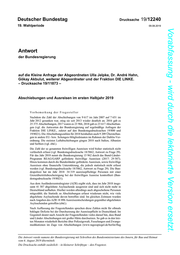 Deutscher Bundestag Drucksache 19/12240 19. Wahlperiode 09.08.2019 Vorabfassung - wird durch die lektorierte Version ersetzt. Antwort der Bundesregierung auf die Kleine Anfrage der Abgeordneten Ulla Jelpke, Dr. André Hahn, Gökay Akbulut, weiterer Abgeordneter und der Fraktion DIE LINKE. – Drucksache 19/11873 – Abschiebungen und Ausreisen im ersten Halbjahr 2019 Vorbemerkung der Fragesteller Nachdem die Zahl der Abschiebungen von 9 617 im Jahr 2007 auf 7 651 im Jahr 2012 gesunken war, stieg sie seit 2013 wieder deutlich an. 2016 gab es 25 375 Abschiebungen, 2017 waren es 23 966, 2018 gab es 23 617 Abschiebun- gen (vgl. die Antworten der Bundesregierung auf regelmäßige Anfragen der Fraktion DIE LINKE., zuletzt auf den Bundestagsdrucksachen 19/800 und 19/8021). Die Abschiebungszahlen für 2018 beinhalten auch 9 209 Überstellun- gen in andere EU- bzw. Schengen-Mitgliedstaaten im Rahmen der Dublin-Ver- ordnung. Die meisten Luftabschiebungen gingen 2018 nach Italien, Albanien und Serbien (vgl. ebd.). Die Zahl der so genannten freiwilligen Ausreisen wird bisher statistisch nicht verlässlich erfasst (vgl. Bundestagsdrucksache 18/5862, Antwort zu Frage 29). Für das Jahr 2018 nennt die Bundesregierung 15 962 durch das Bund-Länder- Programm REAG/GARP geförderte freiwillige Ausreisen (2017: 29 587). Hinzu kommen durch die Bundesländer geförderte Ausreisen, sowie freiwillige Ausreisen ohne finanzielle Unterstützung, die jedoch statistisch nicht erfasst werden (vgl. Bundestagsdrucksache 18/5862, Antwort zu Frage 29). Die Bun- despolizei hat im Jahr 2018 34 319 ausreisepflichtige Personen mit einer Grenzübertrittsbescheinigung bei der freiwilligen Ausreise kontrolliert (Bun- destagsdrucksache 19/8021). Aus dem Ausländerzentralregister (AZR) ergibt sich, dass im Jahr 2018 insge- samt 41 587 abgelehnte Asylsuchende ausgereist sind und sich nicht mehr in Deutschland aufhalten. Hierbei werden allerdings auch abgeschobene Personen mitgezählt; die Statistik zu Abschiebungen erfasst wiederum nicht, wie viele abgelehnte Asylsuchende davon betroffen sind. Im gleichen Zeitraum wurden nach Angaben des AZR 18 896 Ausreiseentscheidungen gegenüber abgelehnten Asylsuchenden getroffen (ebd.). Nach Auffassung der Fragestellenden sprechen diese Zahlen nicht für oftmals beklagte Defizite bei der Durchsetzung der Ausreisepflicht in Deutschland. Im Gegenteil deutet nach Ansicht der Fragestellenden vieles darauf hin, dass Bund und Länder Abschiebungen mit großer Härte durchsetzen. So gab es in den letz- ten Monaten wiederholt Berichte über Polizeigewalt, Fesselungen und Zwangs- medikationen im Zuge von Abschiebungen (www.tagesspiegel.de/berlin/flug Die Antwort wurde namens der Bundesregierung mit Schreiben des Bundesministeriums des Innern, für Bau und Heimat vom 6. August 2019 übermittelt. Die Drucksache enthält zusätzlich – in kleinerer Schrifttype – den Fragetext.