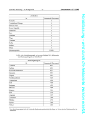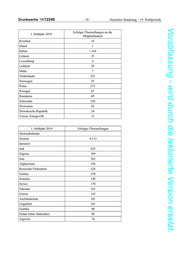Drucksache 19/12240 –8– Deutscher Bundestag – 19. Wahlperiode Vorabfassung - wird durch die lektorierte Version ersetzt. 1 Staatsangehörigkeit 1b Gesamtzahl (Personen) Kuba 3 Estland 3 Israel 3 Nepal 3 Malaysia 2 Saudi-Arabien 2 Simbabwe 2 Slowenien 2 Madagaskar 2 Myanmar 2 Kenia 2 Haiti 2 Passinhaber der Palästinensischen Autonomiebehörde 2 Belgien 2 Kambodscha 2 Kanada 2 Mauretanien 2 Südsudan 2 Trinidad und Tobago 1 Guyana 1 Bolivien 1 Sambia 1 Peru 1 Honduras 1 Gabun 1 Korea Republik 1 Malawi 1 Mosambik 1 Südafrika 1 Schweden 1 Namibia 1 Nicaragua 1 Gesamtergebnis 11.496