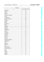 Deutscher Bundestag – 19. Wahlperiode –3– Drucksache 19/12240 Vorabfassung - wird durch die lektorierte Version ersetzt. Zielländern 1a Gesamtzahl (Personen) Afghanistan 161 Ukraine 159 Tunesien 155 Belgien 143 Tschechische Republik 137 Litauen 127 Aserbaidschan 114 Bosnien-Herzegowina 108 Finnland 107 Portugal 96 Ghana 91 Bangladesch 84 Indien 81 Dänemark 77 Lettland 74 Bulgarien 73 Griechenland 70 Gambia 60 Norwegen 60 Montenegro 58 Ägypten 41 Slowenien 40 Vietnam 39 Kroatien 37 Slowakische Republik 33 Weißrussland 31 Ungarn 25 Libanon 24 Kasachstan 20 Irak 19 Großbritannien 18 Volksrepublik China 18 Iran 18 Guinea 16 Estland 16 Kamerun 14 Senegal 14