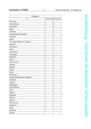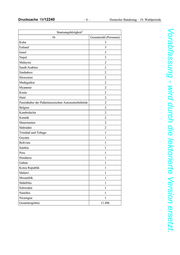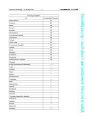 Drucksache 19/12240 –4– Deutscher Bundestag – 19. Wahlperiode Vorabfassung - wird durch die lektorierte Version ersetzt. Zielländern 1a Gesamtzahl (Personen) Sri Lanka 13 Tadschikistan 10 Kolumbien 10 Malta 8 Jordanien 8 Dominikanische Republik 8 Thailand 7 Sudan 7 Vereinigte Staaten von Amerika 6 Brasilien 5 Usbekistan 5 Chile 5 Luxemburg 4 Venezuela 4 Äthiopien 4 Benin 4 Côte d'Ivoire 4 Jamaika 3 Uganda 3 Nepal 3 Israel 3 Kirgisistan 3 Kongo (Demokratische Republik) 3 Dschibuti 2 Angola 2 Madagaskar 2 Guinea-Bissau 2 Haiti 2 Tschad 2 Mongolei 2 Bolivien 1 Sambia 1 Sierra Leone 1 Simbabwe 1 Kenia 1 Honduras 1 Kanada 1
