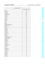 Deutscher Bundestag – 19. Wahlperiode –7– Drucksache 19/12240 Vorabfassung - wird durch die lektorierte Version ersetzt. 1 Staatsangehörigkeit 1b Gesamtzahl (Personen) Guinea-Bissau 22 Jordanien 21 Benin 18 Kuwait 17 Kroatien 17 Griechenland 16 Slowakische Republik 15 Niederlande 14 Tschad 13 Sierra Leone 13 Tschechische Republik 12 Uganda 12 Jemen 12 Mongolei 11 Kolumbien 10 Kirgisistan 10 Dominikanische Republik 10 Thailand 9 Kongo (Demokratische Republik) 9 Togo 8 Portugal 8 Niger 8 Liberia 7 Großbritannien 7 Usbekistan 6 Chile 6 Burkina Faso 6 Spanien 6 Frankreich 5 Brasilien 5 Tansania 5 Vereinigte Staaten von Amerika 5 Venezuela 4 Jamaika 4 Ruanda 4 Österreich 4 Dschibuti 4