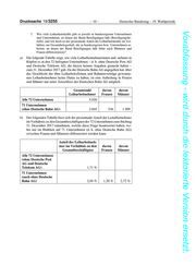Deutscher Bundestag – 19. Wahlperiode –9– Drucksache 19/3255 Vorabfassung - wird durch die lektorierte Version ersetzt. b) Die nachfolgende Tabelle stellt den prozentualen Anteil der befristet Be- schäftigten im Verhältnis zu den Gesamtbeschäftigten der 73 Unternehmen zum 31. Dezember 2017 dar, welche diese Frage beantwortet haben, wobei zwischen Frauen und Männern differenziert wird. Anteil der befristet Beschäf- tigten im Verhältnis zu den davon davon Gesamtbeschäftigten Frauen Männer Deutsche Telekom AG 1,42 % 1,36 % 1,45 % Übrige 72 10,23 Unternehmen 7,51 % % 6,33 % Alle 73 Unternehmen (mit Deutscher Telekom AG, aber ohne Deutsche Post AG) 5,90 % 7,82 % 5,05 % 6. Wie viele sachgrundlos befristete Arbeitsverhältnisse gibt es jeweils in bun- deseigenen Unternehmen und Unternehmen, an denen der Bund Beteiligun- gen hält (Beteiligungsbericht) und wie hoch ist der prozentuale Anteil der sachgrundlos befristeten Arbeitsverhältnis im Verhältnis zur Gesamtzahl der Beschäftigten, die in bundeseigenen Unternehmen bzw. Unternehmen arbei- ten, an denen der Bund Beteiligungen hält (bitte nach Männern und Frauen differenzieren)? a) Der nachfolgenden tabellarischen Darstellung lässt sich entnehmen, wie viele sachgrundlos befristete Beschäftigte es in 70 der befragten Unternehmen – d. h. ohne Deutsche Post AG und Deutsche Telekom AG, die hierzu keinen Angaben gemacht haben sowie zwei weiteren Unternehmen, die angegeben haben, hierüber keine Daten erfasst zu haben – zum 31. Dezember 2017 gab. Gesamtzahl sachgrundlos davon davon befristet Beschäftigt Frauen Männer Alle 70 Unternehmen 8.118 3.532 4.586 b) Die nachfolgende Tabelle stellt den prozentualen Anteil der sachgrundlos be- fristet Beschäftigten im Verhältnis zu den Gesamtbeschäftigten der 70 Un- ternehmen zum 31. Dezember 2017 dar, welche diese Frage beantwortet ha- ben, wobei zwischen Frauen und Männern differenziert wird. Anteil der sachgrundlos befris- tet Beschäftigten im Verhältnis davon davon zu den Gesamtbeschäftigten Frauen Männer 70 Unternehmen 3,21 % 5,20 % 2,47 %