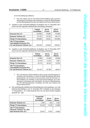Drucksache 19/3255 –8– Deutscher Bundestag – 19. Wahlperiode Vorabfassung - wird durch die lektorierte Version ersetzt. Art der Beschäftigungsverhältnisse 4. Wie viele Vollzeit- und wie viele Teilzeit-Arbeitsverhältnisse gibt es jeweils in bundeseigenen Unternehmen und Unternehmen, an denen der Bund Beteiligun- gen hält (Beteiligungsbericht) (bitte nach Männern und Frauen differenzieren)? a) Angaben zu den Vollzeitbeschäftigten (in Köpfen) zum 31. Dezember 2017 lassen sich der folgenden tabellarischen Darstellung entnehmen: Vollzeit- davon davon beschäftigte Frauen Männer Deutsche Post AG 136.000 39.000 97.000 Deutsche Telekom AG 91.355 22.182 69.173 Übrige 72 Unternehmen 250.889 58.481 192.408 Alle 74 Unternehmen (einschließlich Deutsche Post AG und Deutsche Telekom AG) 478.244 119.663 358.581 b) Angaben zu den Teilzeitbeschäftigten (in Köpfen) zum 31. Dezember 2017 lassen sich der folgenden tabellarischen Darstellung entnehmen: Teilzeit- davon davon beschäftigte Frauen Männer Deutsche Post AG 75.000 51.000 24.000 Deutsche Telekom AG 14.716 11.035 3.681 Übrige 72 Unternehmen 43.715 30.745 12.970 Alle 74 Unternehmen (einschließlich Deutsche Post AG und Deutsche Telekom AG) 133.431 92.780 40.651 5. Wie viele befristete Arbeitsverhältnisse gibt es jeweils in bundeseigenen Un- ternehmen und Unternehmen, an denen der Bund Beteiligungen hält (Betei- ligungsbericht), und wie hoch ist der prozentuale Anteil der befristeten Ar- beitsverhältnisse im Verhältnis zu den insgesamt Beschäftigten, die in bun- deseigenen Unternehmen und Unternehmen, an denen der Bund Beteiligun- gen hält (Beteiligungsbericht), beschäftigt sind (bitte nach Männern und Frauen differenzieren)? a) Der nachfolgenden tabellarischen Darstellung lässt sich entnehmen, wie viele befristete Beschäftigte es am 31. Dezember 2017 in Köpfen in den befragten 73 Unternehmen – d. h. ohne Deutsche Post AG, die hierzu keinen Angaben gemacht hat – gab. Gesamtzahl befristet davon davon Beschäftigte Frauen Männer Deutsche Telekom AG 1.505 452 1.053 Übrige 72 Unternehmen 22.138 9.129 13.009 Alle 73 Unternehmen (Deutsche Telekom AG, aber ohne Deutsche Post AG) 23.643 9.581 14.062