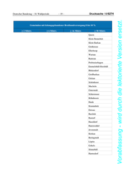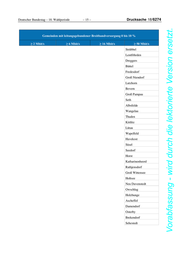 Drucksache 18/6274 – 20 – Deutscher Bundestag – 18. Wahlperiode Vorabfassung - wird durch die lektorierte Version ersetzt. Gemeinden mit leitungsgebundener Breitbandversorgung 0 bis 10 % ≥ 2 Mbit/s ≥ 6 Mbit/s ≥ 16 Mbit/s ≥ 50 Mbit/s Wenningstedt-Braderup (Sylt) Damlos Güby Haselau Langballig Seeth-Ekholt Steinberg Westerholz Rodenäs Witsum Westerhever 4. Welche schleswig-holsteinischen Gemeinden sind nach Kenntnis der Bun- desregierung bereits flächendeckend mit festnetzbasierter Technologie von mindestens 16 Mbit/s, 30 Mbit/s und 50 Mbit/s Downstream versorgt? Gemeinden mit leitungsgebundener Breitbandversorgung > 90 % ≥ 16 Mbit/s ≥ 30 Mbit/s ≥ 50 Mbit/s Stapelfeld Barnitz Barnitz Barnitz Geesthacht Geesthacht Geesthacht Fahrenkrug Fahrenkrug Fahrenkrug Neversdorf Neversdorf Neversdorf Ahrensburg Ahrensburg Ahrensburg Groß Kummerfeld Groß Kummerfeld Quickborn Mühlenrade Mühlenrade Groß Kummerfeld Krummendiek Krummendiek Mühlenrade Norddorf auf Amrum Norddorf auf Amrum Krummendiek Rickert Neumünster Norddorf auf Amrum Neumünster Lauenburg/Elbe Oevenum Lauenburg/Elbe Wakendorf II Rickert Fockbek Brunstorf Jagel Wakendorf II Hamwarde