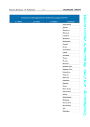 Drucksache 18/6274 – 16 – Deutscher Bundestag – 18. Wahlperiode Vorabfassung - wird durch die lektorierte Version ersetzt. Gemeinden mit leitungsgebundener Breitbandversorgung 0 bis 10 % ≥ 2 Mbit/s ≥ 6 Mbit/s ≥ 16 Mbit/s ≥ 50 Mbit/s Bünsdorf Klein Wittensee Hütten Holzdorf Waabs Goosefeld Kühren Tackesdorf Bösdorf Embühren Leezen Todesfelde Elskop Krempermoor Stein Lütjenwestedt Kalübbe Fiefbergen Hanerau-Hademarschen Oldenbüttel Beldorf Steenfeld Ascheberg (Holstein) Klein Offenseth-Spar- rieshoop Stipsdorf Wendtorf Bredenbek Honigsee Martensrade Tröndel Lebrade