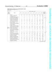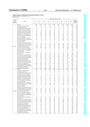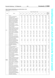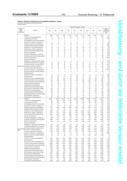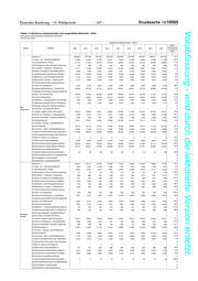 Drucksache 19/10505 – 102 – Deutscher Bundestag – 19. Wahlperiode Vorabfassung - wird durch die lektorierte Version ersetzt. Tabelle 12: Bestand an Arbeitslosen nach ausgewählten Merkmalen - Experte - Deutschland und Bundesländer (Gebietsstand April 2019) Jahresdurchschnitte Bestand an Arbeitslosen - Experte - Geschlecht/ relative Alter/ Veränderung Zielberuf 2010 2011 2012 2013 2014 2015 2016 2017 2018 Staats- von 2010 zu angehörigkeit 2018 1 2 3 4 5 6 7 8 9 11 Insgesamt 2.258 1.915 1.895 2.212 2.249 2.145 2.285 2.262 2.097 -7,1 11,Land-, Tier-, Forstwirtschaftsberufe 21 19 16 20 18 18 40 37 27 33,7 12,Gartenbauberufe, Floristik 19 15 11 9 8 8 6 6 3 -82,3 21,Rohstoffgewinn,Glas-,Keramikverarbeitung - 0 0 1 1 2 1 2 1 x 22,Kunststoff- u. Holzherst.,-verarbeitung 4 5 4 2 4 3 6 5 4 4,2 23,Papier-,Druckberufe, tech.Mediengestalt. 55 57 67 68 71 77 78 71 71 29,0 24,Metallerzeugung,-bearbeitung, Metallbau 1 1 1 2 1 1 2 2 3 100,0 25,Maschinen- und Fahrzeugtechnikberufe 66 42 37 72 80 80 98 83 67 0,8 26,Mechatronik-, Energie- u. Elektroberufe 72 39 40 60 52 59 71 63 49 -32,3 27,Techn.Entwickl.Konstr.Produktionssteuer. 89 62 50 77 80 85 83 91 74 -17,6 28,Textil- und Lederberufe 22 18 16 17 16 21 17 16 14 -36,4 29,Lebensmittelherstellung u. -verarbeitung 20 19 17 16 10 11 8 6 6 -70,8 31,Bauplanung,Architektur,Vermessungsberufe 50 44 42 53 59 57 70 67 68 35,4 32,Hoch- und Tiefbauberufe 3 2 3 4 4 3 9 9 8 236,7 33,(Innen-)Ausbauberufe - - - - - - - - - x 34,Gebäude- u. versorgungstechnische Berufe 7 5 6 5 6 4 5 5 3 -58,2 41,Mathematik-Biologie-Chemie-,Physikberufe 106 100 96 117 103 98 91 90 86 -18,9 42,Geologie-,Geografie-,Umweltschutzberufe 25 28 22 56 68 53 56 67 67 166,1 unter 25 Jahre 43,Informatik- und andere IKT-Berufe 117 81 70 96 115 130 136 141 132 12,8 51,Verkehr, Logistik (außer Fahrzeugführ.) 36 30 42 50 52 51 63 47 44 22,1 52,Führer von Fahrzeug- u. Transportgeräten 1 2 1 3 4 2 2 2 2 122,2 53,Schutz-,Sicherheits-, Überwachungsberufe 5 5 4 3 6 5 25 37 23 .x 54,Reinigungsberufe - - - - - - - - - x 61,Einkaufs-, Vertriebs- und Handelsberufe 49 37 40 52 53 60 70 72 80 62,4 62,Verkaufsberufe 86 63 74 74 65 60 55 47 47 -45,6 63,Tourismus-, Hotel- und Gaststättenberufe 102 103 103 98 105 97 108 103 96 -5,3 71,Berufe Unternehmensführung,-organisation 275 223 230 276 283 258 300 296 256 -6,9 72,Finanzdienstl.Rechnungsw.,Steuerberatung 87 69 73 83 91 99 106 97 84 -3,8 73,Berufe in Recht und Verwaltung 57 58 59 50 43 46 40 37 38 -33,0 81,Medizinische Gesundheitsberufe 62 59 54 68 77 78 113 145 140 127,2 82,Nichtmed.Gesundheit,Körperpfl.,Medizint. 44 37 46 52 54 56 55 54 51 15,4 83,Erziehung,soz.,hauswirt.Berufe,Theologie 180 182 181 196 210 177 136 138 164 -9,2 84,Lehrende und ausbildende Berufe 120 107 94 103 108 89 97 102 91 -23,9 91,Geistes-Gesellschafts-Wirtschaftswissen. 190 183 183 199 182 159 143 138 126 -33,5 92,Werbung,Marketing,kaufm,red.Medienberufe 98 87 95 112 112 111 107 94 86 -12,5 93,Produktdesign, Kunsthandwerk 25 23 21 27 20 20 23 21 20 -20,3 94,Darstellende, unterhaltende Berufe 164 108 96 90 82 66 63 68 59 -64,1 Insgesamt 106.941 94.372 92.004 101.129 106.186 103.856 97.860 94.873 89.631 -16,2 11,Land-, Tier-, Forstwirtschaftsberufe 947 867 823 844 878 874 946 949 827 -12,7 12,Gartenbauberufe, Floristik 680 599 527 518 483 426 366 286 264 -61,2 21,Rohstoffgewinn,Glas-,Keramikverarbeitung 34 27 17 21 26 37 47 52 48 39,7 22,Kunststoff- u. Holzherst.,-verarbeitung 177 109 99 126 131 132 130 125 100 -43,4 23,Papier-,Druckberufe, tech.Mediengestalt. 2.157 1.902 1.893 2.045 2.022 1.982 1.804 1.735 1.617 -25,0 24,Metallerzeugung,-bearbeitung, Metallbau 150 99 84 107 107 121 117 120 102 -32,4 25,Maschinen- und Fahrzeugtechnikberufe 2.660 1.647 1.434 1.907 2.507 2.804 2.732 2.602 2.214 -16,8 26,Mechatronik-, Energie- u. Elektroberufe 2.612 1.756 1.496 1.851 2.202 2.367 2.310 2.092 1.778 -32,0 27,Techn.Entwickl.Konstr.Produktionssteuer. 3.842 2.722 2.584 3.386 4.016 4.023 3.938 3.662 3.292 -14,3 28,Textil- und Lederberufe 637 542 521 563 557 536 528 528 475 -25,5 29,Lebensmittelherstellung u. -verarbeitung 828 743 755 791 767 725 683 651 621 -25,1 31,Bauplanung,Architektur,Vermessungsberufe 5.034 4.057 3.642 3.712 3.689 3.427 3.136 2.953 2.743 -45,5 32,Hoch- und Tiefbauberufe 503 376 267 279 282 289 306 305 294 -41,6 33,(Innen-)Ausbauberufe - - - - - - - - - x 34,Gebäude- u. versorgungstechnische Berufe 218 180 155 159 173 156 157 131 117 -46,4 41,Mathematik-Biologie-Chemie-,Physikberufe 6.014 5.946 6.388 7.589 8.553 8.890 8.438 7.672 6.816 13,3 42,Geologie-,Geografie-,Umweltschutzberufe 1.849 1.746 1.804 1.985 2.277 2.409 2.194 1.958 1.739 -5,9 25 bis unter 50 43,Informatik- und andere IKT-Berufe 5.415 3.990 3.806 4.707 5.190 5.248 4.969 4.811 4.579 -15,4 Jahre 51,Verkehr, Logistik (außer Fahrzeugführ.) 1.966 1.477 1.449 1.712 1.842 1.738 1.663 1.587 1.447 -26,4 52,Führer von Fahrzeug- u. Transportgeräten 23 26 27 45 50 47 51 75 73 223,3 53,Schutz-,Sicherheits-, Überwachungsberufe 94 86 88 110 115 118 404 424 390 .x 54,Reinigungsberufe - - - - - - - - - x 61,Einkaufs-, Vertriebs- und Handelsberufe 4.059 3.225 3.481 4.209 4.419 4.247 4.465 4.277 4.094 0,9 62,Verkaufsberufe 3.469 2.795 3.243 2.905 2.587 2.202 2.077 2.030 1.874 -46,0 63,Tourismus-, Hotel- und Gaststättenberufe 3.338 2.996 2.847 2.992 3.002 2.902 2.712 2.599 2.461 -26,3 71,Berufe Unternehmensführung,-organisation 12.620 10.752 10.437 11.630 11.831 11.407 10.603 10.496 10.100 -20,0 72,Finanzdienstl.Rechnungsw.,Steuerberatung 3.353 2.924 2.919 3.425 3.612 3.427 3.233 3.029 2.682 -20,0 73,Berufe in Recht und Verwaltung 6.261 5.708 5.384 5.391 5.298 5.091 4.549 4.364 4.009 -36,0 81,Medizinische Gesundheitsberufe 5.146 4.981 5.149 5.674 6.188 6.521 7.155 7.818 8.246 60,2 82,Nichtmed.Gesundheit,Körperpfl.,Medizint. 866 858 878 999 1.100 1.048 1.013 991 909 5,0 83,Erziehung,soz.,hauswirt.Berufe,Theologie 5.307 5.567 5.228 5.170 5.240 4.889 3.917 4.069 4.242 -20,1 84,Lehrende und ausbildende Berufe 8.787