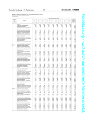 Drucksache 19/10505 – 104 – Deutscher Bundestag – 19. Wahlperiode Vorabfassung - wird durch die lektorierte Version ersetzt. Tabelle 12: Bestand an Arbeitslosen nach ausgewählten Merkmalen - Experte - Deutschland und Bundesländer (Gebietsstand April 2019) Jahresdurchschnitte Bestand an Arbeitslosen - Experte - Geschlecht/ relative Alter/ Veränderung Zielberuf 2010 2011 2012 2013 2014 2015 2016 2017 2018 Staats- von 2010 zu angehörigkeit 2018 1 2 3 4 5 6 7 8 9 11 Insgesamt 16.168 14.736 14.617 16.737 18.899 20.291 22.732 24.855 24.761 53,1 11,Land-, Tier-, Forstwirtschaftsberufe 100 93 91 85 111 131 274 372 320 219,4 12,Gartenbauberufe, Floristik 31 25 30 34 47 46 45 39 46 49,7 21,Rohstoffgewinn,Glas-,Keramikverarbeitung 16 13 10 14 16 24 35 41 37 133,0 22,Kunststoff- u. Holzherst.,-verarbeitung 13 10 12 11 14 15 15 15 14 0,6 23,Papier-,Druckberufe, tech.Mediengestalt. 243 228 244 260 257 260 254 267 270 10,9 24,Metallerzeugung,-bearbeitung, Metallbau 38 35 29 30 33 43 40 44 46 19,7 25,Maschinen- und Fahrzeugtechnikberufe 532 389 338 435 568 659 718 742 701 31,7 26,Mechatronik-, Energie- u. Elektroberufe 643 474 424 525 663 715 797 851 767 19,3 27,Techn.Entwickl.Konstr.Produktionssteuer. 515 376 374 529 667 714 698 708 657 27,4 28,Textil- und Lederberufe 81 65 68 83 97 100 106 111 113 39,5 29,Lebensmittelherstellung u. -verarbeitung 116 90 98 111 129 147 143 145 148 27,1 31,Bauplanung,Architektur,Vermessungsberufe 780 714 675 774 876 930 1.088 1.224 1.217 56,0 32,Hoch- und Tiefbauberufe 72 53 47 60 82 118 162 191 190 163,6 33,(Innen-)Ausbauberufe - - - - - - - - - x 34,Gebäude- u. versorgungstechnische Berufe 29 19 15 25 39 34 35 44 35 22,0 41,Mathematik-Biologie-Chemie-,Physikberufe 973 998 1.053 1.292 1.524 1.663 1.786 1.799 1.712 76,0 42,Geologie-,Geografie-,Umweltschutzberufe 213 197 214 281 332 373 380 441 441 107,4 Ausländer 43,Informatik- und andere IKT-Berufe 855 666 671 869 1.025 1.123 1.199 1.326 1.316 54,0 51,Verkehr, Logistik (außer Fahrzeugführ.) 259 222 259 297 333 352 380 383 387 49,2 52,Führer von Fahrzeug- u. Transportgeräten 7 9 6 9 9 12 17 26 24 .x 53,Schutz-,Sicherheits-, Überwachungsberufe 11 11 6 11 13 16 154 181 153 .x 54,Reinigungsberufe - - - - - - - - - x 61,Einkaufs-, Vertriebs- und Handelsberufe 496 422 453 612 698 731 823 857 876 76,9 62,Verkaufsberufe 342 317 318 303 321 313 315 332 330 -3,6 63,Tourismus-, Hotel- und Gaststättenberufe 854 812 791 825 846 874 846 844 803 -6,0 71,Berufe Unternehmensführung,-organisation 2.196 1.955 1.930 2.156 2.337 2.532 2.770 3.002 2.974 35,4 72,Finanzdienstl.Rechnungsw.,Steuerberatung 402 397 411 480 546 543 571 584 554 37,9 73,Berufe in Recht und Verwaltung 378 365 354 355 408 442 506 565 501 32,5 81,Medizinische Gesundheitsberufe 843 819 888 1.065 1.344 1.731 2.447 3.174 3.509 .x 82,Nichtmed.Gesundheit,Körperpfl.,Medizint. 62 57 61 78 92 95 108 122 122 96,4 83,Erziehung,soz.,hauswirt.Berufe,Theologie 430 444 436 463 527 529 473 489 540 25,6 84,Lehrende und ausbildende Berufe 1.945 2.016 1.997 2.146 2.284 2.368 2.807 3.172 3.301 69,7 91,Geistes-Gesellschafts-Wirtschaftswissen. 965 1.007 992 1.101 1.177 1.153 1.166 1.157 1.100 14,1 92,Werbung,Marketing,kaufm,red.Medienberufe 371 373 377 436 487 533 569 622 609 64,2 93,Produktdesign, Kunsthandwerk 122 121 117 158 190 183 227 231 231 89,2 94,Darstellende, unterhaltende Berufe 1.235 947 823 820 802 782 771 749 710 -42,5 Insgesamt 6.731 6.341 6.572 7.846 8.688 8.845 8.728 8.478 8.101 20,4 11,Land-, Tier-, Forstwirtschaftsberufe 35 36 40 34 44 45 50 46 40 16,6 12,Gartenbauberufe, Floristik 13 14 17 20 29 29 22 18 21 53,4 21,Rohstoffgewinn,Glas-,Keramikverarbeitung 2 0 1 2 3 3 5 4 3 37,5 22,Kunststoff- u. Holzherst.,-verarbeitung 6 5 6 3 7 6 6 4 4 -35,1 23,Papier-,Druckberufe, tech.Mediengestalt. 125 115 122 125 135 144 131 138 146 16,2 24,Metallerzeugung,-bearbeitung, Metallbau 8 6 4 7 10 12 10 10 8 -2,0 25,Maschinen- und Fahrzeugtechnikberufe 150 108 112 165 227 250 227 195 160 6,3 26,Mechatronik-, Energie- u. Elektroberufe 141 112 124 163 216 221 207 185 135 -4,3 27,Techn.Entwickl.Konstr.Produktionssteuer. 200 146 159 231 290 301 275 280 263 31,1 28,Textil- und Lederberufe 36 29 32 43 51 45 48 53 49 34,6 29,Lebensmittelherstellung u. -verarbeitung 68 47 53 64 77 87 92 89 84 23,7 31,Bauplanung,Architektur,Vermessungsberufe 261 276 275 365 432 416 398 357 337 28,9 32,Hoch- und Tiefbauberufe 21 16 17 25 35 40 36 37 36 71,0 33,(Innen-)Ausbauberufe - - - - - - - - - x 34,Gebäude- u. versorgungstechnische Berufe 7 4 5 8 14 12 11 14 9 18,4 41,Mathematik-Biologie-Chemie-,Physikberufe 383 398 435 551 617 671 677 623 570 48,9 42,Geologie-,Geografie-,Umweltschutzberufe 87 81 90 136 150 159 149 140 129 48,4 EU-Ausländer 43,Informatik- und andere IKT-Berufe 306 238 260 346 388 424 440 466 468 53,2 51,Verkehr, Logistik (außer Fahrzeugführ.) 118 99 123 148 157 158 182 176 170 44,3 52,Führer von Fahrzeug- u. Transportgeräten 2 4 2 5 6 6 6 11 9 .x 53,Schutz-,Sicherheits-, Überwachungsberufe 2 3 2 4 7 8 48 53 40 .x 54,Reinigungsberufe - - - - - - - - - x 61,Einkaufs-, Vertriebs- und Handelsberufe 296 260 274 382 430 432 474 463 481 62,5 62,Verkaufsberufe 161 155 158 150 156 147 142 152 154 -4,0 63,Tourismus-, Hotel- und Gaststättenberufe 466 448 463 496 487 488 472 454 411 -11,7 71,Berufe Unternehmensführung,-organisation 1.002 885 876 1.035 1.125 1.165 1.083 1.083 1.073 7,0 72,Finanzdienstl.Rechnungsw.,Steuerberatung 183 186 204 233 262 261 268 248 224 22,4 73,Berufe in Recht und Verwaltung 174 177 176 186 195 185 174 177 143 -17,8 81,Medizinische Gesundheitsberufe 256 286 356 457 528 583 634 645 673 163,1 82,Nichtmed.Gesundheit,Körperpfl.,Medizint. 25 21 21 25 32 34 40 41 38 50,7 83,Erziehung,soz.,hauswirt.Berufe,Theologie 184 182 190 208 233 243 220 218 233 26,4 84,Lehrende und ausbildende Berufe 748 817 823 904 945 940 893 891 880 17,7 91,Geistes-Gesellschafts-Wirtschaftswissen. 455 474 487 560 588 543 527 463 386 -15,1 92,Werbung,Marketing,kaufm,red.Medienberuf