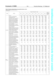 Drucksache 19/10505 – 108 – Deutscher Bundestag – 19. Wahlperiode Vorabfassung - wird durch die lektorierte Version ersetzt. Tabelle 13: Bestand an Arbeitsuchenden nach ausgewählten Merkmalen - Helfer - Deutschland und Bundesländer (Gebietsstand April 2019) Jahresdurchschnitte Bestand an Arbeitsuchenden - Helfer - relative Region Zielberuf Veränderung 2010 2011 2012 2013 2014 2015 2016 2017 2018 von 2010 zu 2018 1 2 3 4 5 6 7 8 9 11 Insgesamt 50.164 51.221 53.304 53.719 55.062 57.446 58.691 59.846 57.786 15,2 11,Land-, Tier-, Forstwirtschaftsberufe 222 196 187 189 187 199 241 279 302 35,8 12,Gartenbauberufe, Floristik 1.586 1.644 1.678 1.677 1.656 1.668 1.613 1.543 1.441 -9,2 21,Rohstoffgewinn,Glas-,Keramikverarbeitung 18 18 17 13 11 9 11 17 15 -14,9 22,Kunststoff- u. Holzherst.,-verarbeitung 504 461 449 448 452 447 512 550 511 1,3 23,Papier-,Druckberufe, tech.Mediengestalt. 137 177 270 291 334 355 359 357 349 153,7 24,Metallerzeugung,-bearbeitung, Metallbau 575 550 571 571 559 559 585 610 576 0,1 25,Maschinen- und Fahrzeugtechnikberufe 387 385 390 373 391 427 511 630 605 56,3 26,Mechatronik-, Energie- u. Elektroberufe 394 364 366 366 405 424 525 595 558 41,5 27,Techn.Entwickl.Konstr.Produktionssteuer. - - - - - - - - - x 28,Textil- und Lederberufe 265 297 303 327 360 425 496 593 631 137,9 29,Lebensmittelherstellung u. -verarbeitung 6.341 6.603 6.998 7.103 7.270 7.589 7.807 7.998 7.682 21,1 31,Bauplanung,Architektur,Vermessungsberufe - - - - - - - - - x 32,Hoch- und Tiefbauberufe 1.314 1.229 1.047 952 921 945 977 960 870 -33,8 33,(Innen-)Ausbauberufe 1.085 1.137 1.194 1.174 1.147 1.228 1.391 1.563 1.445 33,2 34,Gebäude- u. versorgungstechnische Berufe 124 127 140 150 164 190 215 256 261 111,2 41,Mathematik-Biologie-Chemie-,Physikberufe 158 142 134 130 130 135 155 174 149 -6,2 42,Geologie-,Geografie-,Umweltschutzberufe - - - - - - - - - x Hamburg 43,Informatik- und andere IKT-Berufe - - - - - - - - - x 51,Verkehr, Logistik (außer Fahrzeugführ.) 10.771 10.508 10.577 10.068 9.814 9.861 9.798 9.753 9.493 -11,9 52,Führer von Fahrzeug- u. Transportgeräten 1.453 1.346 1.345 1.373 1.347 1.306 1.192 1.086 984 -32,2 53,Schutz-,Sicherheits-, Überwachungsberufe 251 287 332 350 364 412 548 656 638 154,4 54,Reinigungsberufe 9.290 9.560 10.155 10.458 10.848 11.513 11.726 11.695 11.087 19,3 61,Einkaufs-, Vertriebs- und Handelsberufe - - - - - - - - - x 62,Verkaufsberufe 5.770 6.385 7.046 7.443 7.935 8.463 8.770 9.021 8.769 52,0 63,Tourismus-, Hotel- und Gaststättenberufe 1.459 1.393 1.497 1.536 1.715 2.071 2.338 2.362 2.353 61,2 71,Berufe Unternehmensführung,-organisation 4.616 4.761 4.730 4.679 4.835 4.843 4.803 4.701 4.593 -0,5 72,Finanzdienstl.Rechnungsw.,Steuerberatung - - - - - - - - - x 73,Berufe in Recht und Verwaltung - - - - - 0 - 0 - x 81,Medizinische Gesundheitsberufe 471 452 460 468 462 448 463 476 476 1,0 82,Nichtmed.Gesundheit,Körperpfl.,Medizint. 1.661 1.744 1.746 1.727 1.710 1.751 1.792 1.980 1.991 19,9 83,Erziehung,soz.,hauswirt.Berufe,Theologie 1.293 1.443 1.662 1.841 2.034 2.170 1.852 1.982 2.000 54,7 84,Lehrende und ausbildende Berufe - - - - - - - - - x 91,Geistes-Gesellschafts-Wirtschaftswissen. 17 12 10 14 12 10 12 12 10 -41,9 92,Werbung,Marketing,kaufm,red.Medienberufe - - - - - - - - - x 93,Produktdesign, Kunsthandwerk - - - - - - - - - x 94,Darstellende, unterhaltende Berufe - - - - - - - - - x Insgesamt 171.332 172.336 172.663 185.123 186.552 188.178 191.207 199.568 195.789 14,3 11,Land-, Tier-, Forstwirtschaftsberufe 2.882 2.656 2.772 2.965 2.907 3.048 3.476 3.847 3.683 27,8 12,Gartenbauberufe, Floristik 10.530 11.101 11.470 12.256 11.767 11.473 11.046 10.757 10.130 -3,8 21,Rohstoffgewinn,Glas-,Keramikverarbeitung 462 429 435 510 496 377 382 366 350 -24,3 22,Kunststoff- u. Holzherst.,-verarbeitung 3.521 3.634 4.130 4.581 4.546 4.575 4.741 4.988 4.905 39,3 23,Papier-,Druckberufe, tech.Mediengestalt. 448 633 1.348 2.016 2.343 2.604 2.929 3.182 3.188 .x 24,Metallerzeugung,-bearbeitung, Metallbau 6.299 5.809 6.493 7.056 6.740 6.445 6.283 6.146 5.685 -9,8 25,Maschinen- und Fahrzeugtechnikberufe 2.401 2.515 2.559 2.638 2.567 2.800 3.489 4.104 3.773 57,1 26,Mechatronik-, Energie- u. Elektroberufe 1.572 1.488 1.470 1.621 1.577 1.612 1.927 2.412 2.422 54,1 27,Techn.Entwickl.Konstr.Produktionssteuer. - - - - - - - - - x 28,Textil- und Lederberufe 525 579 642 671 709 768 970 1.328 1.422 171,1 29,Lebensmittelherstellung u. -verarbeitung 16.014 17.031 18.199 19.766 20.071 20.326 20.874 21.942 21.896 36,7 31,Bauplanung,Architektur,Vermessungsberufe - - - - - - - - - x 32,Hoch- und Tiefbauberufe 7.514 6.419 5.356 5.228 4.936 4.808 4.843 4.904 4.468 -40,5 33,(Innen-)Ausbauberufe 3.741 3.865 3.883 4.224 4.387 4.555 5.235 6.084 6.020 60,9 34,Gebäude- u. versorgungstechnische Berufe 444 482 478 583 629 696 817 879 883 99,0 41,Mathematik-Biologie-Chemie-,Physikberufe 443 392 383 395 401 403 472 565 583 31,5 42,Geologie-,Geografie-,Umweltschutzberufe - - - - - - - - - x Nieder- 43,Informatik- und andere IKT-Berufe - - - - - - - - - x sachsen 51,Verkehr, Logistik (außer Fahrzeugführ.) 31.843 31.146 30.515 32.016 32.039 31.622 31.675 32.115 31.268 -1,8 52,Führer von Fahrzeug- u. Transportgeräten 4.985 4.619 4.311 4.558 4.484 4.384 4.311 4.169 3.916 -21,4 53,Schutz-,Sicherheits-, Überwachungsberufe 863 887 883 937 888 906 1.007 1.045 999 15,8 54,Reinigungsberufe 30.223 31.075 30.452 32.572 33.265 34.443 35.200 36.374 35.930 18,9 61,Einkaufs-, Vertriebs- und Handelsberufe - - - - - - - - - x 62,Verkaufsberufe 19.284 20.322 20.428 21.846 22.409 22.786 23.103 23.532 23.021 19,4 63,Tourismus-, Hotel- und Gaststättenberufe 3.388 3.267 3.298 3.859 4.090 4.294 4.548 4.969 5.127 51,3 71,Berufe Unternehmensführung,-organisation 9.996 9.698 9.337 9.868 10.021 10.036 10.270 10.769 10.605 6,1 72,Finanzdienstl.Rechnungsw.,Steuerberatung - - - - - - - - - x 73,Berufe in Recht und Verwaltung 1 0 0 1 1 1 1 3 1 128,6 81,Medizinische Gesundheitsberufe 1.094 947 823 771 732 687 733 843 820 -2