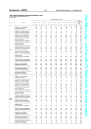 Deutscher Bundestag – 19. Wahlperiode – 81 – Drucksache 19/10505 Vorabfassung - wird durch die lektorierte Version ersetzt. Tabelle 8: Bestand an Arbeitslosen nach ausgewählten Merkmalen - Experte - Deutschland und Bundesländer (Gebietsstand April 2019) Jahresdurchschnitte Bestand an Arbeitslosen - Experte - relative Region Zielberuf Veränderung 2010 2011 2012 2013 2014 2015 2016 2017 2018 von 2010 zu 2018 1 2 3 4 5 6 7 8 9 11 Insgesamt 16.531 14.093 13.655 15.297 16.233 16.129 15.887 15.350 14.699 -11,1 11,Land-, Tier-, Forstwirtschaftsberufe 112 117 105 119 123 116 132 116 107 -4,6 12,Gartenbauberufe, Floristik 62 48 41 49 50 41 43 28 25 -59,5 21,Rohstoffgewinn,Glas-,Keramikverarbeitung 2 0 1 1 0 2 2 3 4 160,0 22,Kunststoff- u. Holzherst.,-verarbeitung 35 21 20 25 23 30 35 27 26 -24,5 23,Papier-,Druckberufe, tech.Mediengestalt. 243 190 182 216 205 203 187 181 156 -35,8 24,Metallerzeugung,-bearbeitung, Metallbau 35 27 20 19 27 21 18 19 23 -33,5 25,Maschinen- und Fahrzeugtechnikberufe 583 366 297 383 501 520 504 487 411 -29,6 26,Mechatronik-, Energie- u. Elektroberufe 475 329 294 345 403 451 453 381 324 -31,8 27,Techn.Entwickl.Konstr.Produktionssteuer. 1.046 813 756 915 1.067 1.049 1.085 1.000 963 -7,9 28,Textil- und Lederberufe 74 61 54 61 64 69 71 60 54 -26,6 29,Lebensmittelherstellung u. -verarbeitung 122 109 105 113 123 110 105 98 87 -29,0 31,Bauplanung,Architektur,Vermessungsberufe 774 620 507 550 563 550 519 490 463 -40,2 32,Hoch- und Tiefbauberufe 47 41 34 35 42 45 48 41 47 0,7 33,(Innen-)Ausbauberufe - - - - - - - - - x 34,Gebäude- u. versorgungstechnische Berufe 28 22 20 21 24 27 26 23 24 -16,8 41,Mathematik-Biologie-Chemie-,Physikberufe 881 852 908 1.114 1.256 1.290 1.254 1.076 993 12,7 42,Geologie-,Geografie-,Umweltschutzberufe 217 189 194 223 236 242 256 192 199 -8,3 Baden- 43,Informatik- und andere IKT-Berufe 1.113 782 729 934 1.033 1.057 1.071 1.024 922 -17,2 Württemberg 51,Verkehr, Logistik (außer Fahrzeugführ.) 417 320 301 361 385 374 374 348 328 -21,4 52,Führer von Fahrzeug- u. Transportgeräten 3 2 3 4 3 4 5 7 8 209,7 53,Schutz-,Sicherheits-, Überwachungsberufe 15 13 14 15 20 18 68 70 64 .x 54,Reinigungsberufe - - - - - - - - - x 61,Einkaufs-, Vertriebs- und Handelsberufe 1.007 835 836 995 1.077 1.058 1.141 1.107 1.098 9,0 62,Verkaufsberufe 553 441 527 478 435 381 380 387 370 -33,1 63,Tourismus-, Hotel- und Gaststättenberufe 443 402 372 418 414 422 401 396 390 -12,1 71,Berufe Unternehmensführung,-organisation 2.190 1.830 1.765 1.981 2.119 2.041 1.959 1.923 1.900 -13,3 72,Finanzdienstl.Rechnungsw.,Steuerberatung 568 529 519 583 621 609 630 637 582 2,4 73,Berufe in Recht und Verwaltung 680 571 557 575 548 513 477 448 439 -35,5 81,Medizinische Gesundheitsberufe 717 660 736 798 813 851 973 1.084 1.094 52,6 82,Nichtmed.Gesundheit,Körperpfl.,Medizint. 106 91 100 109 136 123 133 141 134 27,1 83,Erziehung,soz.,hauswirt.Berufe,Theologie 808 836 787 777 793 779 642 720 768 -5,0 84,Lehrende und ausbildende Berufe 1.460 1.444 1.422 1.446 1.463 1.448 1.343 1.392 1.357 -7,1 91,Geistes-Gesellschafts-Wirtschaftswissen. 802 750 695 730 748 769 697 646 589 -26,7 92,Werbung,Marketing,kaufm,red.Medienberufe 439 393 419 519 526 531 477 466 430 -2,1 93,Produktdesign, Kunsthandwerk 127 105 88 126 128 117 114 104 98 -23,4 94,Darstellende, unterhaltende Berufe 349 286 248 258 258 266 262 228 222 -36,4 Insgesamt 18.435 15.960 16.182 18.563 19.889 19.867 19.353 18.653 18.227 -1,1 11,Land-, Tier-, Forstwirtschaftsberufe 86 80 95 98 102 109 106 104 91 5,8 12,Gartenbauberufe, Floristik 66 60 57 69 69 65 55 49 39 -40,5 21,Rohstoffgewinn,Glas-,Keramikverarbeitung 4 3 2 4 3 6 5 4 5 7,7 22,Kunststoff- u. Holzherst.,-verarbeitung 43 28 26 33 36 41 34 27 20 -53,5 23,Papier-,Druckberufe, tech.Mediengestalt. 293 242 240 261 253 256 235 220 215 -26,6 24,Metallerzeugung,-bearbeitung, Metallbau 35 22 18 21 25 26 25 28 27 -22,7 25,Maschinen- und Fahrzeugtechnikberufe 480 306 285 386 473 501 492 428 400 -16,7 26,Mechatronik-, Energie- u. Elektroberufe 555 373 332 422 504 527 545 499 419 -24,5 27,Techn.Entwickl.Konstr.Produktionssteuer. 966 752 733 943 1.102 1.113 1.070 1.085 992 2,7 28,Textil- und Lederberufe 74 57 55 66 71 69 58 55 57 -23,1 29,Lebensmittelherstellung u. -verarbeitung 163 141 152 169 173 172 161 145 144 -11,8 31,Bauplanung,Architektur,Vermessungsberufe 739 608 548 621 676 644 587 516 497 -32,8 32,Hoch- und Tiefbauberufe 65 53 41 50 47 50 53 55 46 -30,2 33,(Innen-)Ausbauberufe - - - - - - - - - x 34,Gebäude- u. versorgungstechnische Berufe 30 17 24 28 36 35 42 35 33 10,6 41,Mathematik-Biologie-Chemie-,Physikberufe 879 824 893 1.108 1.266 1.310 1.301 1.201 1.049 19,4 42,Geologie-,Geografie-,Umweltschutzberufe 182 179 199 244 271 260 250 210 202 11,0 Bayern 43,Informatik- und andere IKT-Berufe 1.249 961 947 1.207 1.331 1.366 1.330 1.284 1.254 0,5 51,Verkehr, Logistik (außer Fahrzeugführ.) 465 353 365 423 463 458 442 409 370 -20,5 52,Führer von Fahrzeug- u. Transportgeräten 3 4 2 4 6 8 13 17 14 .x 53,Schutz-,Sicherheits-, Überwachungsberufe 21 18 17 21 23 30 92 91 77 .x 54,Reinigungsberufe - - - - - - - - - x 61,Einkaufs-, Vertriebs- und Handelsberufe 1.263 1.019 1.081 1.334 1.433 1.441 1.555 1.538 1.523 20,6 62,Verkaufsberufe 741 584 683 678 624 545 501 460 460 -37,8 63,Tourismus-, Hotel- und Gaststättenberufe 587 526 492 516 553 547 529 507 454 -22,7 71,Berufe Unternehmensführung,-organisation 2.973 2.492 2.541 2.950 3.072 3.089 2.937 2.888 2.960 -0,4 72,Finanzdienstl.Rechnungsw.,Steuerberatung 770 670 705 833 929 906 905 840 775 0,7 73,Berufe in Recht und Verwaltung 678 643 599 668 705 723 680 653 658 -2,9 81,Medizinische Gesundheitsberufe 930 891 928 1.013 1.097 1.109 1.195 1.212 1.263 35,8 82,Nichtmed.Gesundheit,Körperpfl.,Medizint. 91 83 91 120 141 140 156 155 137 49,9 83,Erziehung,soz.,hauswirt.Berufe,Theologie 636 679 691 680 682 625 536 604 715 12,3 84,Lehrende und ausbildende Berufe 1.329 1.430 1.438 1.447 1.504 1.531 1.415 1.394 1.452 9,2 91,Geistes-Gesellschaft