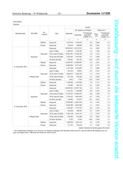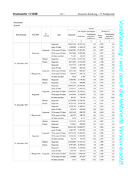 Deutscher Bundestag – 19. Wahlperiode – 65 – Drucksache 19/1226 Vorabfassung - wird durch die lektorierte Version ersetzt. Deutschland Zeitreihe Anzahl mit Angabe zum Entgelt Median in € Ge- Veränderung Veränderung Berichtsmonat WZ 2008 Alter Insgesamt Insge- schlecht Insgesamt gegenüber gegenüber samt Vorjahr in % Vorjahr in % 1 2 3 4 5 Männer Insgesamt 1.225.979 1.210.493 0,9 2.664 2,3 Frauen Insgesamt 110.428 109.009 - 0,0 2.283 3,2 Insgesamt 20.562.821 20.372.912 1,6 3.083 1,9 unter 25 Jahre 1.265.555 1.250.166 - 1,4 2.230 2,4 Insgesamt 25 bis unter 55 Jahre 15.681.557 15.540.328 1,0 3.134 1,7 Insgesamt 55 bis unter 65 Jahre 3.510.307 3.479.264 5,3 3.299 2,4 65 Jahre und älter 105.401 103.154 14,9 2.535 2,7 Männer Insgesamt 13.698.767 13.600.487 1,9 3.261 1,7 Frauen Insgesamt 6.864.054 6.772.425 1,0 2.771 2,4 31. Dezember 2015 Insgesamt 1.357.106 1.342.097 1,7 2.690 1,9 unter 25 Jahre 101.235 99.891 - 2,2 2.341 2,4 Insgesamt 25 bis unter 55 Jahre 1.026.515 1.016.183 1,3 2.713 1,7 F Baugewerbe 55 bis unter 65 Jahre 221.344 218.264 5,1 2.830 1,9 65 Jahre und älter 8.012 7.759 12,0 2.518 3,4 Männer Insgesamt 1.246.604 1.232.969 1,9 2.711 1,8 Frauen Insgesamt 110.502 109.128 0,1 2.369 3,8 Insgesamt 20.895.291 20.707.738 1,6 3.133 1,6 unter 25 Jahre 1.274.451 1.259.966 0,8 2.272 1,9 Insgesamt 25 bis unter 55 Jahre 15.778.355 15.640.267 0,6 3.180 1,5 Insgesamt 55 bis unter 65 Jahre 3.724.431 3.691.848 6,1 3.356 1,7 65 Jahre und älter 118.054 115.657 12,1 2.614 3,1 Männer Insgesamt 13.956.982 13.862.338 1,9 3.301 1,2 Frauen Insgesamt 6.938.309 6.845.400 1,1 2.833 2,2 31. Dezember 2016 Insgesamt 1.392.267 1.377.552 2,6 2.735 1,6 unter 25 Jahre 101.846 100.595 0,7 2.379 1,6 Insgesamt 25 bis unter 55 Jahre 1.043.136 1.033.151 1,7 2.755 1,5 F Baugewerbe 55 bis unter 65 Jahre 238.503 235.268 7,8 2.883 1,9 65 Jahre und älter 8.782 8.538 10,0 2.546 1,1 Männer Insgesamt 1.280.526 1.267.134 2,8 2.754 1,6 Frauen Insgesamt 111.741 110.418 1,2 2.446 3,2 Quelle: Statistik der Bundesagentur für Arbeit x) Aus methodischen Gründen ist ein Ausweis von Entgeltverteilungen oder Quantilen nicht sinnvoll, wenn die Zahl der Beschäftigten mit An- gabe zum Entgelt unter 1.000 liegt oder Nachweis nicht sinnvoll.