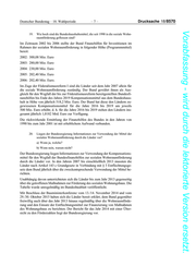 Deutscher Bundestag – 18. Wahlperiode –7– Drucksache 18/8570 Vorabfassung - wird durch die lektorierte Version ersetzt. 19. Wie hoch sind die Bundeshaushaltsmittel, die seit 1990 in die soziale Wohn- raumförderung geflossen sind? Im Zeitraum 2002 bis 2006 stellte der Bund Finanzhilfen für Investitionen im Rahmen der sozialen Wohnraumförderung in folgender Höhe (Programmmittel) bereit: 2002: 300,08 Mio. Euro 2003: 280,00 Mio. Euro 2004: 230,00 Mio. Euro 2005: 202,40 Mio. Euro 2006: 202,40 Mio. Euro. Im Zuge der Föderalismusreform I sind die Länder seit dem Jahr 2007 allein für die soziale Wohnraumförderung zuständig. Der Bund gewährt ihnen als Aus- gleich für den Wegfall der bis zur Föderalismusreform bereitgestellten Bundesfi- nanzhilfen bis Ende des Jahres 2019 Kompensationsmittel aus dem Bundeshaus- halt in Höhe von jährlich 518,2 Mio. Euro. Der Bund hat diese den Ländern zu- gewiesenen Kompensationsmittel für die Jahre 2016 bis 2019 um jeweils 500 Mio. Euro erhöht; d. h. für die Jahre 2016 bis 2019 stehen den Ländern ins- gesamt jährlich 1,0182 Mrd. Euro zur Verfügung. Die rückwirkende Ermittlung der Finanzhilfen des Bundes in den Jahren von 1990 bis zum Jahr 2001 ist mit erheblichem Aufwand verbunden. 20. Liegen der Bundesregierung Informationen zur Verwendung der Mittel der sozialen Wohnraumförderung durch die Länder vor? a) Wenn ja, welche? b) Wenn nein, warum nicht? Der Bundesregierung liegen Informationen zur Verwendung der Kompensations- mittel für den Wegfall der Bundesfinanzhilfen zur sozialen Wohnraumförderung durch die Länder vor. In den Jahren 2007 bis einschließlich 2013 mussten die Länder nach Artikel 143 c Grundgesetz in Verbindung mit § 3 Entflechtungsge- setz dem Bund jährlich über die zweckentsprechende Verwendung der Mittel be- richten. Unabhängig davon unterrichteten sich die Länder bis zum Jahr 2013 gegenseitig über die getroffenen Maßnahmen zur Förderung des sozialen Wohnungsbaus. Die Tabelle wurde unregelmäßig im Bundesbaublatt veröffentlicht. Mit Beschluss der Bauministerkonferenz vom 13./14. November 2014 und vom 29./30. Oktober 2015 haben sich die Länder bereit erklärt, dem Bund gegenüber freiwillig auch über das Jahr 2013 hinaus regelmäßig über die Wohnraumförde- rung und den Einsatz der Entflechtungsmittel zur Finanzierung von Maßnahmen des Wohnungsbaus zu berichten. Der Bericht für das Jahr 2014 mit einer Über- sicht zu den Förderzahlen liegt der Bundesregierung vor.