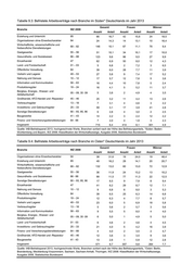 7DEHOOH %HIULVWHWH $UEHLWVYHUWUlJH QDFK %UDQFKH LP 6GHQ 'HXWVFKODQGV LP -DKU *HVDPW )UDXHQ 0lQQHU %UDQFKH := $Q]DKO $QWHLO $Q]DKO $QWHLO $Q]DKO $QWHLO (U]LHKXQJ XQG 8QWHUULFKW 2UJDQLVDWLRQHQ RKQH (UZHUEVFKDUDNWHU :LUWVFKDIWOLFKH ZLVVHQVFKDIWOLFKH XQG ± IUHLEHUXIOLFKH 'LHQVWOHLVWXQJHQ *DVWJHZHUEH ± *HVXQGKHLWV XQG 6R]LDOZHVHQ ± (LQ]HOKDQGHO /DQG XQG )RUVWZLUWVFKDIW ± gIIHQWOLFKH 9HUZDOWXQJ 9HUNHKU XQG /DJHUHL ± 1DKUXQJ XQG *HQXVV ± ,QIRUPDWLRQ XQG .RPPXQLNDWLRQ ± 3URGXNWLRQVJWHU ± %HUJEDX (QHUJLH :DVVHU XQG ± $EIDOOZLUWVFKDIW *URKDQGHO .)=+DQGHO XQG 5HSDUDWXU ± 9HUEUDXFKVJWHU ± ,QYHVWLWLRQV XQG *HEUDXFKVJWHU ± 6RQVWLJH 'LHQVWOHLVWXQJHQ ± %DXJHZHUEH ± )LQDQ] XQG 9HUVLFKHUXQJVGLHQVWOHLVWXQJHQ ,QVJHVDPW 4XHOOH ,$%%HWULHEVSDQHO KRFKJHUHFKQHWH :HUWH %UDQFKHQ VRUWLHUW QDFK GHU +|KH GHV %HIULVWXQJVDQWHLOV 6GHQ %DGHQ :UWWHPEHUJ XQG %D\HUQ := .ODVVLILNDWLRQ GHU :LUWVFKDIWV]ZHLJH $XVJDEH 6WDWLVWLVFKHV %XQGHVDPW 7DEHOOH %HIULVWHWH $UEHLWVYHUWUlJH QDFK %UDQFKH LP 2VWHQ 'HXWVFKODQGV LP -DKU *HVDPW )UDXHQ 0lQQHU %UDQFKH := $Q]DKO $QWHLO $Q]DKO $QWHLO $Q]DKO $QWHLO 2UJDQLVDWLRQHQ RKQH (UZHUEVFKDUDNWHU (U]LHKXQJ XQG 8QWHUULFKW :LUWVFKDIWOLFKH ZLVVHQVFKDIWOLFKH XQG ± IUHLEHUXIOLFKH 'LHQVWOHLVWXQJHQ *DVWJHZHUEH ± *HVXQGKHLWV XQG 6R]LDOZHVHQ 6RQVWLJH 'LHQVWOHLVWXQJHQ ± (LQ]HOKDQGHO 1DKUXQJ XQG *HQXVV ± gIIHQWOLFKH 9HUZDOWXQJ 3URGXNWLRQVJWHU ± 9HUNHKU XQG /DJHUHL ± 9HUEUDXFKVJWHU ± ,QIRUPDWLRQ XQG .RPPXQLNDWLRQ ± %HUJEDX (QHUJLH :DVVHU XQG ± $EIDOOZLUWVFKDIW /DQG XQG )RUVWZLUWVFKDIW ,QYHVWLWLRQV XQG *HEUDXFKVJWHU ± )LQDQ] XQG 9HUVLFKHUXQJVGLHQVWOHLVWXQJHQ ± *URKDQGHO .)=+DQGHO XQG 5HSDUDWXU ± %DXJHZHUEH ,QVJHVDPW 4XHOOH ,$%%HWULHEVSDQHO KRFKJHUHFKQHWH :HUWH %UDQFKHQ VRUWLHUW QDFK GHU +|KH GHV %HIULVWXQJVDQWHLOV 2VWHQ %HUOLQ %UDQGHQEXUJ 0HFNOHQEXUJ9RUSRPPHUQ 6DFKVHQ 6DFKVHQ$QKDOW 7KULQJHQ := .ODVVLILNDWLRQ GHU :LUWVFKDIWV]ZHLJH $XVJDEH 6WDWLVWLVFKHV %XQGHVDPW