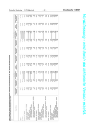Frage 4 (Tabelle 2): Bestand an gemeldeten Arbeitsstellen, Arbeitslosen und Arbeitsuchenden bei "MINT"-Berufen (Jahresdurchschnitte) Deutschland und Bundesländer (Gebietsstand Februar 2019) 2018 Niedersachsen Bremen Bestand gemeldete Bestand Arbeitslos Differenz Arbeitsstellen Bestand Differenz Arbeitsstellen Bestand gemeldete Bestand Arbeitslos Differenz Arbeitsstellen Bestand Differenz Arbeitsstellen Tätigkeit/ Zielberuf Arbeitsstellen arbeitsuchend - Arbeitslose Arbeitsuchend - Arbeitsuchend Arbeitsstellen arbeitsuchend - Arbeitslose Arbeitsuchend - Arbeitsuchend 21 22 23 24 25 26 27 28 29 30 Insgesamt 77.015 227.834 -150.818 414.882 -337.867 7.169 34.904 -27.735 65.223 -58.054 MINT-Berufe 23.415 23.442 -28 41.037 -17.623 2.027 3.129 -1.102 5.721 -3.695 Fachkräfte - MINT-Tätigkeiten 17.962 15.291 2.670 26.827 -8.866 1.499 2.062 -563 3.777 -2.278 Mathematik, Naturwissenschaften - Fachkräfte 296 402 -106 763 -468 15 35 -19 64 -49 Informatik - Fachkräfte 320 602 -282 1.027 -707 59 105 -46 183 -123 Technik - Fachkräfte 17.346 14.287 3.059 25.036 -7.690 1.424 1.922 -498 3.530 -2.107 dav. Landtechnik - Fachkräfte 9 20 -12 45 -36 - 1 -1 1 -1 Produktionstechnik - Fachkräfte 15.130 9.163 5.967 16.654 -1.524 1.207 1.318 -111 2.388 -1.181 Bau- und Gebäudetechnik - Fachkräfte 1.834 4.714 -2.880 7.618 -5.784 182 549 -368 1.030 -848 Verkehrs-, Sicherheits- und Veranstaltungstechnik - Fachkräfte 12 47 -34 66 -54 4 10 -6 16 -12 Deutscher Bundestag – 19. Wahlperiode Gesundheitstechnik - Fachkräfte 361 343 18 653 -292 31 44 -13 96 -65 Spezialisten - MINT-Tätigkeiten 2.623 3.935 -1.312 6.584 -3.961 248 438 -190 770 -522 Mathematik, Naturwissenschaften - Spezialisten 17 77 -61 132 -115 1 6 -6 15 -14 Informatik - Spezialisten 423 798 -375 1.327 -904 57 99 -43 180 -123 Technik - Spezialisten 2.184 3.060 -876 5.125 -2.942 191 333 -142 576 -385 dav. Landtechnik - Spezialisten 7 11 -5 25 -18 - 3 -3 5 -5 Produktionstechnik - Spezialisten 1.228 1.649 -421 2.858 -1.630 107 185 -78 323 -215 Bau- und Gebäudetechnik - Spezialisten 325 203 122 327 -3 11 11 0 24 -13 Verkehrs-, Sicherheits- und Veranstaltungstechnik - Spezialisten 75 234 -159 388 -313 21 42 -21 78 -57 – 45 – Gesundheitstechnik - Spezialisten 549 961 -413 1.526 -978 52 92 -40 146 -94 Experten - MINT-Tätigkeiten 2.830 4.216 -1.386 7.627 -4.796 280 629 -349 1.174 -894 Mathematik, Naturwissenschaften - Experten 181 982 -802 1.828 -1.647 13 164 -151 311 -298 Informatik - Experten 844 560 283 931 -87 73 91 -18 165 -92 Technik - Experten 1.806 2.674 -868 4.868 -3.062 193 374 -181 698 -505 dav. Landtechnik - Experten 46 231 -185 637 -591 4 12 -9 26 -22 Produktionstechnik - Experten 956 1.725 -770 2.947 -1.992 120 252 -131 455 -334 Bau- und Gebäudetechnik - Experten 736 495 241 906 -170 63 77 -14 156 -93 Verkehrs-, Sicherheits- und Veranstaltungstechnik - Experten 57 187 -129 317 -259 5 26 -20 46 -41 Gesundheitstechnik - Experten 10 35 -25 61 -51 1 8 -6 16 -15 Drucksache 19/9401 Vorabfassung - wird durch die lektorierte Version ersetzt.