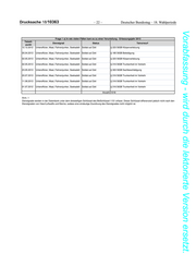 Deutscher Bundestag – 18. Wahlperiode – 23 – Drucksache 18/10363 Vorabfassung - wird durch die lektorierte Version ersetzt. Anlage 2 zu Parl Sts bei der Bundesministerin der Verteidigung Grübel -1880022-V177- vom .November 2016 Frage 1 a) In wie vielen Fällen kann es zu einer Verurteilung? - Erfassungsjahr 2014 Tatzeit- Dienstgrad Status Tatvorwurf punkt 01.01.2009 Stabsunteroffizier, Obermaat Soldat auf Zeit § 145 StGB Mißbrauch von Notrufen und Beeinträchtigung von Unfallverhütungs- und Notfallhilfemitteln 01.02.2009 Oberstleutnant, Fregattenkapitän Berufssoldat § 263 StGB Betrug 30.10.2009 Oberfeldwebel, Oberbootsmann Soldat auf Zeit § 263 StGB Betrug 08.02.2010 Soldat Soldat auf Zeit § 15 WStG Eigenmächtige Abwesenheit 03.03.2010 Stabsgefreiter Soldat auf Zeit Strafrechtliche Nebengesetze 16.03.2010 Oberstabsgefreiter Soldat auf Zeit § 242 StGB Diebstahl 23.06.2010 Stabsunteroffizier, Obermaat Soldat auf Zeit § 223 StGB Körperverletzung 24.09.2010 Stabsgefreiter Soldat auf Zeit § 15 WStG Eigenmächtige Abwesenheit 01.01.2011 Hauptgefreiter Soldat auf Zeit § 185 StGB Beleidigung 02.02.2011 Hauptgefreiter Freiwillig Wehrdienst § 154 StGB Meineid leistend 01.04.2011 Hauptfeldwebel, Hauptbootsmann, Berufssoldat § 263 StGB Betrug Oberfähnrich, Oberfähnrich z. S. 01.04.2011 Oberstleutnant, Fregattenkapitän Berufssoldat § 123 StGB Hausfriedensbruch 15.04.2011 Feldwebel, Bootsmann, Fähnrich, Fähnrich Soldat auf Zeit § 315c Gefährdung des Straßenverkehrs z.S. 18.06.2011 Hauptgefreiter Soldat auf Zeit § 243 StGB Besonders schwerer Fall des Diebstahls 16.07.2011 Hauptfeldwebel, Hauptbootsmann, Berufssoldat § 263 StGB Betrug Oberfähnrich, Oberfähnrich z. S. 16.07.2011 Hauptgefreiter Soldat auf Zeit § 267 StGB Urkundenfälschung 05.08.2011 Stabsgefreiter Soldat auf Zeit Strafrechtliche Nebengesetze 27.08.2011 Hauptgefreiter Soldat auf Zeit Strafrechtliche Nebengesetze 03.09.2011 Hauptgefreiter Soldat auf Zeit § 142 StGB Unerlaubtes Entfernen vom Unfallort 10.09.2011 Hauptmann, Kapitänleutnant Berufssoldat § 185 StGB Beleidigung 12.09.2011 Oberstabsgefreiter Soldat auf Zeit § 15 WStG Eigenmächtige Abwesenheit 23.10.2011 Oberfeldwebel, Oberbootsmann Soldat auf Zeit § 21 StVG Fahren ohne Führerschein 24.10.2011 Stabsunteroffizier, Obermaat Soldat auf Zeit § 266 StGB Untreue 07.11.2011 Leutnant, Leutnant z.S. Soldat auf Zeit § 223 StGB Körperverletzung 07.11.2011 Soldat Freiwillig Wehrdienst § 15 WStG Eigenmächtige Abwesenheit leistend 09.11.2011 Stabsgefreiter Soldat auf Zeit § 263 StGB Betrug 01.12.2011 Unteroffizier, Maat, Fahnenjunker, Seekadett Soldat auf Zeit § 263 StGB Betrug 05.12.2011 Soldat Freiwillig Wehrdienst § 15 WStG Eigenmächtige Abwesenheit leistend 11.12.2011 Stabsgefreiter Soldat auf Zeit § 267 StGB Urkundenfälschung 13.12.2011 Oberfeldwebel, Oberbootsmann Soldat auf Zeit § 184b StGB Verbreitung, Erwerb und Besitz kinderpornographischer Schriften 29.12.2011 Stabsgefreiter Soldat auf Zeit § 223 StGB Körperverletzung 30.12.2011 Stabsgefreiter Soldat auf Zeit § 263 StGB Betrug 31.12.2011 Stabsunteroffizier, Obermaat Soldat auf Zeit § 31 WStG Entwürdigende Behandlung 01.01.2012 Obergefreiter Freiwillig Wehrdienst § 242 StGB Diebstahl leistend 09.01.2012 Hauptgefreiter Freiwillig Wehrdienst § 15 WStG Eigenmächtige Abwesenheit leistend 09.01.2012 Unteroffizier, Maat, Fahnenjunker, Seekadett Soldat auf Zeit § 267 StGB Urkundenfälschung 13.01.2012 Stabsunteroffizier, Obermaat Soldat auf Zeit § 263 StGB Betrug 30.01.2012 Oberfeldwebel, Oberbootsmann Soldat auf Zeit § 263 StGB Betrug 03.02.2012 Stabsgefreiter Soldat auf Zeit § 223 StGB Körperverletzung 17.02.2012 Hauptfeldwebel, Hauptbootsmann, Berufssoldat § 223 StGB Körperverletzung Oberfähnrich, Oberfähnrich z. S. 24.02.2012 Hauptgefreiter Soldat auf Zeit Betäubungsmittelgesetz 05.03.2012 Oberstleutnant, Fregattenkapitän Berufssoldat § 263 StGB Betrug 20.03.2012 Obergefreiter Freiwillig Wehrdienst Betäubungsmittelgesetz leistend 30.03.2012 Stabsgefreiter Soldat auf Zeit § 263 StGB Betrug 15.04.2012 Stabsunteroffizier, Obermaat Soldat auf Zeit § 224 StGB Gefährliche Körperverletzung 26.04.2012 Oberfeldwebel, Oberbootsmann Soldat auf Zeit § 315c Gefährdung des Straßenverkehrs 01.05.2012 Hauptgefreiter Freiwillig Wehrdienst § 223 StGB Körperverletzung leistend 03.05.2012 Hauptgefreiter Freiwillig Wehrdienst § 15 WStG Eigenmächtige Abwesenheit leistend 04.05.2012 Hauptgefreiter Freiwillig Wehrdienst § 229 StGB Fahrlässige Körperverletzung leistend 13.05.2012 Obergefreiter Soldat auf Zeit § 223 StGB Körperverletzung 16.05.2012 Oberfeldwebel, Oberbootsmann Soldat auf Zeit § 315c Gefährdung des Straßenverkehrs 18.05.2012 Stabsgefreiter Soldat auf Zeit § 223 StGB Körperverletzung 26.05.2012 Hauptgefreiter Soldat auf Zeit § 243 StGB Besonders schwerer Fall des Diebstahls 29.05.2012 Stabsgefreiter Soldat auf Zeit § 21 StVG Fahren ohne Führerschein 18.06.2012 Hauptgefreiter Soldat auf Zeit Strafrechtliche Nebengesetze 22.06.2012 Obergefreiter Soldat auf Zeit §265a StGB Erschleichen von Leistungen 24.06.2012 Hauptgefreiter Freiwillig Wehrdienst § 315c Gefährdung des Straßenverkehrs leistend 26.06.2012 Soldat Soldat auf Zeit § 223 StGB Körperverletzung 03.07.2012 Stabsgefreiter Soldat auf Zeit § 269 StGB Fälschung beweiserheblicher Daten 08.07.2012 Stabsfeldwebel, Stabsbootsmann Berufssoldat § 242 StGB Diebstahl 09.07.2012 Stabsgefreiter Soldat auf Zeit § 263 StGB Betrug 09.07.2012 Stabsgefreiter Soldat auf Zeit §265a StGB Erschleichen von Leistungen