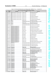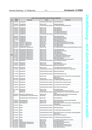 Drucksache 18/10363 – 54 – Deutscher Bundestag – 18. Wahlperiode Vorabfassung - wird durch die lektorierte Version ersetzt. Frage 1 b) In wie vielen Fällen wurde das Verfahren eingestellt? Tatzeit- Jahr Dienstgrad Status Tatvorwurf punkt 29.07.2012 Stabsgefreiter Soldat auf Zeit § 266 StGB Untreue 13.09.2012 Stabsgefreiter Soldat auf Zeit § 303 StGB Sachbeschädigung 21.10.2012 Stabsgefreiter Soldat auf Zeit § 240 StGB Nötigung 18.11.2012 Stabsgefreiter Soldat auf Zeit Betäubungsmittelgesetz 27.11.2012 Stabsgefreiter Soldat auf Zeit § 263 StGB Betrug 27.11.2012 Stabsgefreiter Soldat auf Zeit § 263 StGB Betrug 01.01.2013 Stabsgefreiter Soldat auf Zeit § 258 StGB Strafvereitelung 01.01.2013 Stabsgefreiter Wehrübender § 263 StGB Betrug 14.01.2013 Stabsgefreiter Soldat auf Zeit § 242 StGB Diebstahl 19.03.2013 Stabsgefreiter Soldat auf Zeit § 240 StGB Nötigung 26.04.2013 Stabsgefreiter Soldat auf Zeit § 15 WStG Eigenmächtige Abwesenheit 15.05.2013 Stabsgefreiter Soldat auf Zeit § 16 WStG Fahnenflucht 13.07.2013 Stabsgefreiter Soldat auf Zeit § 123 StGB Hausfriedensbruch 30.08.2013 Stabsgefreiter Soldat auf Zeit Betäubungsmittelgesetz 29.11.2013 Stabsgefreiter Soldat auf Zeit Betäubungsmittelgesetz k.A. Stabsgefreiter Soldat auf Zeit § 170 StGB Verletzung der Unterhaltspflicht k.A. Stabsgefreiter Soldat auf Zeit § 267 StGB Urkundenfälschung k.A. Stabsgefreiter Soldat auf Zeit Betäubungsmittelgesetz 12.09.2011 Stabsunteroffizier, Obermaat Soldat auf Zeit § 15 WStG Eigenmächtige Abwesenheit 01.01.2012 Stabsunteroffizier, Obermaat Soldat auf Zeit § 185 StGB Beleidigung 01.01.2012 Stabsunteroffizier, Obermaat Soldat auf Zeit Strafrechtliche Nebengesetze 31.01.2012 Stabsunteroffizier, Obermaat Soldat auf Zeit § 263 StGB Betrug 04.06.2012 Stabsunteroffizier, Obermaat Soldat auf Zeit § 315c StGB Gefährdung der Straßenverkehrs 11.06.2012 Stabsunteroffizier, Obermaat Soldat auf Zeit § 15 WStG Eigenmächtige Abwesenheit 21.06.2012 Stabsunteroffizier, Obermaat Soldat auf Zeit § 223 StGB Körperverletzung 27.06.2012 Stabsunteroffizier, Obermaat Soldat auf Zeit § 223 StGB Körperverletzung 30.06.2012 Stabsunteroffizier, Obermaat Soldat auf Zeit § 340 StGB Körperverletzung im Amt 16.07.2012 Stabsunteroffizier, Obermaat Soldat auf Zeit § 15 WStG Eigenmächtige Abwesenheit 15.08.2012 Stabsunteroffizier, Obermaat Soldat auf Zeit § 130 StGB Volksverhetzung 28.09.2012 Stabsunteroffizier, Obermaat Soldat auf Zeit § 223 StGB Körperverletzung 29.09.2012 Stabsunteroffizier, Obermaat Soldat auf Zeit Strafrechtliche Nebengesetze 26.10.2012 Stabsunteroffizier, Obermaat Soldat auf Zeit §142 StGB Unerlaubtes Entfernen vom Unfallort 15.11.2012 Stabsunteroffizier, Obermaat Soldat auf Zeit §183 StGB Exhibitionistische Handlungen 01.01.2013 Stabsunteroffizier, Obermaat Soldat auf Zeit § 315c StGB Gefährdung der Straßenverkehrs 01.01.2013 Stabsunteroffizier, Obermaat Soldat auf Zeit §142 StGB Unerlaubtes Entfernen vom Unfallort 09.03.2013 Stabsunteroffizier, Obermaat Soldat auf Zeit § 86a StGB Verwenden von Kennzeichen verfassungswidriger Organisationen 02.04.2013 Stabsunteroffizier, Obermaat Soldat auf Zeit § 248 b StGB Unbefugter Gebrauch eines Fahrzeuges 26.04.2013 Stabsunteroffizier, Obermaat Soldat auf Zeit § 242 StGB Diebstahl 17.08.2013 Stabsunteroffizier, Obermaat Soldat auf Zeit Betäubungsmittelgesetz 29.02.2012 Unteroffizier, Maat, Fahnenjunker, Seekadett Soldat auf Zeit § 263 StGB Betrug 01.08.2012 Unteroffizier, Maat, Fahnenjunker, Seekadett Soldat auf Zeit § 21 StVG Fahren ohne Führerschein 04.11.2012 Unteroffizier, Maat, Fahnenjunker, Seekadett Soldat auf Zeit § 86a StGB Verwenden von Kennzeichen verfassungswidriger Organisationen 12.12.2012 Unteroffizier, Maat, Fahnenjunker, Seekadett Wehrübender Betäubungsmittelgesetz 01.01.2013 Unteroffizier, Maat, Fahnenjunker, Seekadett Soldat auf Zeit § 241 StGB Bedrohung 05.01.2013 Unteroffizier, Maat, Fahnenjunker, Seekadett Soldat auf Zeit § 86a StGB Verwenden von Kennzeichen verfassungswidriger Organisationen 09.01.2013 Unteroffizier, Maat, Fahnenjunker, Seekadett Soldat auf Zeit § 18 WStG Dienstentziehung durch Täuschung Anzahl: 165 10.08.2008 Obergefreiter Freiwillig Wehrdienst leistend § 113 StGB Widerstand gegen Vollstreckungsbeamte 04.10.2010 Stabsgefreiter Soldat auf Zeit § 113 StGB Widerstand gegen Vollstreckungsbeamte 01.04.2011 Stabsgefreiter Soldat auf Zeit § 186 StGB Üble Nachrede 22.05.2012 Stabsgefreiter Soldat auf Zeit § 15 WStG Eigenmächtige Abwesenheit 15.08.2012 Stabsunteroffizier, Obermaat Soldat auf Zeit § 316 StGB Trunkenheit im Verkehr 01.10.2012 Oberfeldwebel, Oberbootsmann Soldat auf Zeit § 187 StGB Verleumdung 01.10.2012 Oberfeldwebel, Oberbootsmann Soldat auf Zeit § 15 WStG Eigenmächtige Abwesenheit 19.11.2012 Hauptgefreiter Soldat auf Zeit § 21 StVG Fahren ohne Führerschein 22.11.2012 Hauptgefreiter Soldat auf Zeit § 20 WStG Gehorsamsverweigerung 15.12.2012 Hauptgefreiter Freiwillig Wehrdienst leistend Betäubungsmittelgesetz 30.12.2012 Hauptfeldwebel, Hauptbootsmann, Berufssoldat § 263 StGB Betrug Oberfähnrich, Oberfähnrich z. S 01.01.2013 Hauptgefreiter Freiwillig Wehrdienst leistend § 242 StGB Diebstahl 01.01.2013 Stabsgefreiter Soldat auf Zeit Betäubungsmittelgesetz 01.01.2013 Stabsgefreiter Soldat auf Zeit § 242 StGB Diebstahl 21.01.2013 Oberleutnant, Oberleutnant z.S Berufssoldat § 15 WStG Eigenmächtige Abwesenheit 30.01.2013 Gefreiter Soldat auf Zeit § 15 WStG Eigenmächtige Abwesenheit 01.02.2013 Oberfeldwebel, Oberbootsmann Soldat auf Zeit § 15 WStG Eigenmächtige Abwesenheit 12.02.2013 Stabsgefreiter Soldat auf Zeit § 224 StGB Gefährliche Körperverletzung 15.02.2013 Stabsunteroffizier, Obermaat Soldat auf Zeit § 223 StGB Körperverletzung 15.02.2013 Stabsunteroffizier, Obermaat Soldat auf Zeit § 223 StGB Körperverletzung 15.02.2013 Stabsunteroffizier, Obermaat Soldat auf Zeit § 223 StGB Körperverletzung 15.02.2013 Stabsunteroffizier, Ober