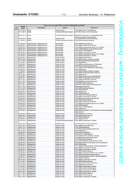Drucksache 18/10363 – 76 – Deutscher Bundestag – 18. Wahlperiode Vorabfassung - wird durch die lektorierte Version ersetzt. Frage 1 e) In wie vielen Fällen wurde eine Geldstrafe verhängt? Tatzeit- Jahr Dienstgrad Status Tatvorwurf punkt 12.12.2012 Unteroffizier, Maat, Fahnenjunker, Seekadett Soldat auf Zeit § 223 StGB Körperverletzung 05.04.2013 Unteroffizier, Maat, Fahnenjunker, Seekadett Soldat auf Zeit § 185 StGB Beleidigung 02.05.2013 Unteroffizier, Maat, Fahnenjunker, Seekadett Soldat auf Zeit § 223 StGB Körperverletzung 02.05.2013 Unteroffizier, Maat, Fahnenjunker, Seekadett Soldat auf Zeit § 316 StGB Trunkenheit im Verkehr 23.05.2013 Unteroffizier, Maat, Fahnenjunker, Seekadett Soldat auf Zeit § 303 StGB Sachbeschädigung 20.07.2013 Unteroffizier, Maat, Fahnenjunker, Seekadett Soldat auf Zeit § 316 StGB Trunkenheit im Verkehr 11.08.2013 Unteroffizier, Maat, Fahnenjunker, Seekadett Soldat auf Zeit § 316 StGB Trunkenheit im Verkehr Anzahl: 849 01.01.2009 Stabsunteroffizier, Obermaat Soldat auf Zeit § 145 StGB Mißbrauch von Notrufen und Beeinträchtigung von Unfallverhütungs- und Notfallhilfemitteln 01.02.2009 Oberstleutnant, Fregattenkapitän Berufssoldat § 263 StGB Betrug 30.10.2009 Oberfeldwebel, Oberbootsmann Soldat auf Zeit § 263 StGB Betrug 08.02.2010 Soldat Soldat auf Zeit § 15 WStG Eigenmächtige Abwesenheit 03.03.2010 Stabsgefreiter Soldat auf Zeit Strafrechtliche Nebengesetze 16.03.2010 Oberstabsgefreiter Soldat auf Zeit § 242 StGB Diebstahl 23.06.2010 Stabsunteroffizier, Obermaat Soldat auf Zeit § 223 StGB Körperverletzung 24.09.2010 Stabsgefreiter Soldat auf Zeit § 15 WStG Eigenmächtige Abwesenheit 01.01.2011 Hauptgefreiter Soldat auf Zeit § 185 StGB Beleidigung 01.04.2011 Hauptfeldwebel, Hauptbootsmann, Berufssoldat § 263 StGB Betrug Oberfähnrich, Oberfähnrich z. S 01.04.2011 Oberstleutnant, Fregattenkapitän Berufssoldat § 123 StGB Hausfriedensbruch 15.04.2011 Feldwebel, Bootsmann, Fähnrich, Fähnrich Soldat auf Zeit § 315c Gefährdung des Straßenverkehrs z.S. 16.07.2011 Hauptfeldwebel, Hauptbootsmann, Berufssoldat § 263 StGB Betrug Oberfähnrich, Oberfähnrich z. S 16.07.2011 Hauptgefreiter Soldat auf Zeit § 267 StGB Urkundenfälschung 05.08.2011 Stabsgefreiter Soldat auf Zeit Strafrechtliche Nebengesetze 27.08.2011 Hauptgefreiter Soldat auf Zeit Strafrechtliche Nebengesetze 03.09.2011 Hauptgefreiter Soldat auf Zeit § 142 StGB Unerlaubtes Entfernen vom Unfallort 10.09.2011 Hauptmann, Kapitänleutnan Berufssoldat § 185 StGB Beleidigung 12.09.2011 Oberstabsgefreiter Soldat auf Zeit § 15 WStG Eigenmächtige Abwesenheit 23.10.2011 Oberfeldwebel, Oberbootsmann Soldat auf Zeit § 21 StVG Fahren ohne Führerschein 24.10.2011 Stabsunteroffizier, Obermaat Soldat auf Zeit § 266 StGB Untreue 07.11.2011 Leutnant, Leutnant z.S Soldat auf Zeit § 223 StGB Körperverletzung 07.11.2011 Soldat Freiwillig Wehrdienst leistend § 15 WStG Eigenmächtige Abwesenheit 09.11.2011 Stabsgefreiter Soldat auf Zeit § 263 StGB Betrug 01.12.2011 Unteroffizier, Maat, Fahnenjunker, Seekadett Soldat auf Zeit § 263 StGB Betrug 11.12.2011 Stabsgefreiter Soldat auf Zeit § 267 StGB Urkundenfälschung 13.12.2011 Oberfeldwebel, Oberbootsmann Soldat auf Zeit § 184b StGB Verbreitung, Erwerb und Besitz kinderpornographischer Schriften 29.12.2011 Stabsgefreiter Soldat auf Zeit § 223 StGB Körperverletzung 30.12.2011 Stabsgefreiter Soldat auf Zeit § 263 StGB Betrug 01.01.2012 Obergefreiter Freiwillig Wehrdienst leistend § 242 StGB Diebstahl 09.01.2012 Hauptgefreiter Freiwillig Wehrdienst leistend § 15 WStG Eigenmächtige Abwesenheit 09.01.2012 Unteroffizier, Maat, Fahnenjunker, Seekadett Soldat auf Zeit § 267 StGB Urkundenfälschung 13.01.2012 Stabsunteroffizier, Obermaat Soldat auf Zeit § 263 StGB Betrug 30.01.2012 Oberfeldwebel, Oberbootsmann Soldat auf Zeit § 263 StGB Betrug 03.02.2012 Stabsgefreiter Soldat auf Zeit § 223 StGB Körperverletzung 17.02.2012 Hauptfeldwebel, Hauptbootsmann, Berufssoldat § 223 StGB Körperverletzung Oberfähnrich, Oberfähnrich z. S 24.02.2012 Hauptgefreiter Soldat auf Zeit Betäubungsmittelgesetz 05.03.2012 Oberstleutnant, Fregattenkapitän Berufssoldat § 263 StGB Betrug 30.03.2012 Stabsgefreiter Soldat auf Zeit § 263 StGB Betrug 26.04.2012 Oberfeldwebel, Oberbootsmann Soldat auf Zeit § 315c Gefährdung des Straßenverkehrs 01.05.2012 Hauptgefreiter Freiwillig Wehrdienst leistend § 223 StGB Körperverletzung 03.05.2012 Hauptgefreiter Freiwillig Wehrdienst leistend § 15 WStG Eigenmächtige Abwesenheit 04.05.2012 Hauptgefreiter Freiwillig Wehrdienst leistend § 229 StGB Fahrlässige Körperverletzung 16.05.2012 Oberfeldwebel, Oberbootsmann Soldat auf Zeit § 315c Gefährdung des Straßenverkehrs 18.05.2012 Stabsgefreiter Soldat auf Zeit § 223 StGB Körperverletzung 18.06.2012 Hauptgefreiter Soldat auf Zeit Strafrechtliche Nebengesetze 22.06.2012 Obergefreiter Soldat auf Zeit §265a StGB Erschleichen von Leistungen 24.06.2012 Hauptgefreiter Freiwillig Wehrdienst leistend § 315c Gefährdung des Straßenverkehrs 26.06.2012 Soldat Soldat auf Zeit § 223 StGB Körperverletzung 03.07.2012 Stabsgefreiter Soldat auf Zeit § 269 StGB Fälschung beweiserheblicher Daten 08.07.2012 Stabsfeldwebel, Stabsbootsmann Berufssoldat § 242 StGB Diebstahl 09.07.2012 Stabsgefreiter Soldat auf Zeit § 263 StGB Betrug 09.07.2012 Stabsgefreiter Soldat auf Zeit §265a StGB Erschleichen von Leistungen 11.07.2012 Oberstabsgefreiter Soldat auf Zeit § 142 StGB Unerlaubtes Entfernen vom Unfallort 16.07.2012 Stabsunteroffizier, Obermaat Soldat auf Zeit § 263 StGB Betrug 22.07.2012 Stabsgefreiter Soldat auf Zeit § 263 StGB Betrug 27.07.2012 Stabsgefreiter Soldat auf Zeit § 263 StGB Betrug