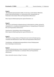 Drucksache 19/16934 ‒ 694 ‒ Deutscher Bundestag – 19. Wahlperiode Frage 11 „Hat die Bundesregierung Kenntnis darüber, ob und wenn ja welche Faktoren (Bürokratie, geringe Förderwahrscheinlichkeit o.ä.) abschreckend auf die Antragstellenden auf Fördermittel wirken könnten? Bitte nach Programmlinien differenzieren.“ Hierzu liegen der Bundesregierung keine eigenen Erkenntnisse vor. Frage 12 „Wie hoch ist nach Kenntnis der Bundesregierung im Durchschnitt der zeitliche Aufwand für Antragsteller bzw. ein auditiertes Beratungsunternehmen zur Antragstellung auf Fördermittel? Bitte nach Programmlinien differenzieren.“ Zeitaufwand zur Antragstellung in diesem Förderprogramm: Hierzu liegen der Bundesregierung keine eigenen Erkenntnisse vor. Frage 13 „Wie kann das Antragsverfahren auf Fördermittel nach Ansicht der Bundesregierung vereinfacht und entbürokratisiert werden? Bitte nach Programmlinien differenzieren.“ Vereinfachungs- und Entbürokratisierungsmethoden in diesem Förderprogramm: Erste Evaluierungen sind abzuwarten. Frage 14 „Was hat die Bundesregierung seit ihrem Amtsantritt im Jahr 2018 unternommen, um Antragsverfahren für Fördermittel zu vereinfachen? Bitte nach Programmlinien differenzieren.“ Hierzu wird auf die Antwort zu Frage 13 verwiesen.