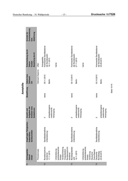 Amtshilfe Nr. Antragsteller Angefragte Fähigkeiten, Anzahl und Bewaffnung Datum bzw. Entscheidung durch Gründe für Datum Kapazitäten, Aufgaben der Zeitraum Datum Zurückziehung Inhalt Gerätschaften Soldaten bzw. Ort Kosten bzw. Soldatinnen Bezahlung durch Ablehnung 78 Innenministerium Logistische Unterstützung 2 keine 09.11.2015 bis Kommando Territoriale Baden- 13.11.2015 Aufgaben der Bundeswehr Württemberg 03.11.2015 Unterwasserdrohne Bedienung Karlsruhe- 10.11.2015 Grötzingen Deutscher Bundestag – 18. Wahlperiode Polizeieinsatz 855,78 Euro Antragsteller 79 Bundespolizei- Nutzungsüberlassen von 0 keine 19.10.2015 bis Kommando Territoriale direktion Pirna Liegenschaften 20.10.2015 Aufgaben der Bundeswehr 16.10.2015 Bereitstellung von Dresden 18.10.2015 Abstellflächen Polizeieinsatz Graf-Stauffenberg- keine Kaserne – 17 – 80 Bundespolizei- Nutzungsüberlassen von 0 keine 30.10.2015 bis Kommando Territoriale direktion Pirna Liegenschaften 01.11.2015 Aufgaben der Bundeswehr 29.10.2015 Bereitstellung von Dresden 30.10.2015 Abstellflächen Polizeieinsatz Graf-Stauffenberg- keine Kaserne 81 Landeskriminalamt Nutzungsüberlassen von 0 keine 17.11.2015 bis Kommando Territoriale Niedersachsen Liegenschaften 19.11.2015 Aufgaben der Bundeswehr 17.11.2015 Bereitstellung von Hannover 17.11.2015 Unterkünften, Abstellflächen und Polizeieinsatz Scharnhorst- offen Kaserne Antragsteller Seite 12/19 Drucksache 18/7526