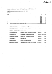Bezirksamt Steglitz- Zehlendorf von Berlin Abteilung Immobilien und Verkehr SE Facility Management FB Hochbauservice Hoch 26 Abgeschlossene Investitionsmaßnahmen 2011-2013 20.08.2014 Frage 1 Ifd. Nr. abgeschlossene Investitionsprojekte 2011-2013 i 1 Paulsen-Gymnasium 2 Siemens-Gymnasium 3 Schadow- und Beucke-OS 4 Wilma-Rudolph-OS 5 Rothenburg-GS 6 Ernst-Reuter-Sportfeld 7 Goerzallee 118 8 Nibelungenstraße 9 Jagdschloss Glienicke Umbau und Sanierung der Aula Abriss und Neubau von Unterrichtsräumen Neubau Mensa Abriss und Neubau von Unterrichtsräumen Umbau ehem. Verwaltungsgebäude Neubau einer Tribünenüberdachung Ersatzbau PUK Neubau PUK Baumkolonne Wiederaufbau und Umbau nach Brandfall Nm Gesamtkosten BPU (ohne Mehrkosten) 561.000 € 700,000 € 450.000 € 950.000 € Anlage 10 & für Kunst am Bau verwendete Mittel D€ € 0€ 0€ 3.250.000 € 25.840 € 936.000 € 910.000 € 550.000 € 14.160.000 € € 0€ v€ 0€