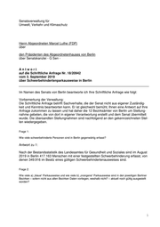 Drucksache 18 / 20 942 Schriftliche Anfrage 18. Wahlperiode Schriftliche Anfrage des Abgeordneten Marcel Luthe (FDP) vom 03. September 2019 (Eingang beim Abgeordnetenhaus am 09. September 2019) zum Thema: Schwerbehindertenparkausweise in Berlin und Antwort vom 20. September 2019 (Eingang beim Abgeordnetenhaus am 25. Sep. 2019) Die Drucksachen des Abgeordnetenhauses sind bei der Kulturbuch-Verlag GmbH zu beziehen. Hausanschrift: Sprosserweg 3, 12351 Berlin-Buckow · Postanschrift: Postfach 47 04 49, 12313 Berlin, Telefon: 6 61 84 84; Telefax: 6 61 78 28.