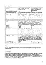 Antwort zu 2: Bezirk EU-Parkausweise (blaue Parkausweise für Gleich- Parkausweise) gestellte (orangefarbene Parkausweise) Charlottenburg-Wilmersdorf 176 24 Friedrichshain-Kreuzberg Es findet keine zahlenmäßige Erfassung der Parkauswei- se statt. Lichtenberg Die bezirkliche Straßenverkehrsbehörde erfasst derzeit die Anzahl der Parkausweise statistisch nicht. Um die be- sagte Information zu erhalten, wäre ein erheblicher Per- sonalaufwand notwendig, wofür leider im Moment keine Kapazitäten vorhanden sind. Marzahn-Hellersdorf 1.947 260 Mitte Eine Statistik über die Anzahl der ausgestellten Parkaus- weise wird im Bezirk Mitte nicht geführt. Eine entspre- chende Datenerhebung des Bestandes wäre nur mit ei- nem unverhältnismäßigen Verwaltungsaufwand möglich. Neukölln ca. 900 ca. 250 Pankow 1.958 252 Reinickendorf 1.546 331 Spandau Es sind aktuell ca. 2.300 „blaue“ und „orangefarbene“ Parkausweise im Bestand. Wie viele Parkausweise davon auf die gleichgestellten Personen („orangefarbene Park- ausweise“) entfallen, kann nicht benannt werden. Es han- delt sich um wenige Fälle, über die keine gesonderte Sta- tistik vorliegt. Steglitz-Zehlendorf Eine konkrete Auflistung über die von der bezirklichen Straßenverkehrsbehörde ausgegebenen und aktuell noch gültigen Parkausweise existiert nicht. Es ist aus Kapazi- tätsgründen kurzfristig nicht möglich, die Vielzahl der be- stehenden Akten zu sichten, um eine entsprechende Auf- listung zu eruieren Treptow-Köpenick 1.112 157 Tempelhof-Schöneberg 1684 Keine statistische Trennung Frage 3: Ist es für die Ausstellung eines solchen Ausweises erforderlich, dass der Ausweisinhaber Inhaber einer Fahrerlaubnis ist? Antwort zu 3: Der Besitz einer Fahrerlaubnis ist nach der Verwaltungsvorschrift zu § 46 der Straßenver- kehrs-Ordnung (StVO) keine notwendige Voraussetzung für die Erteilung eines EU- Parkausweises und der dazugehörenden Ausnahmegenehmigung für schwerbehinderte Personen sowie für Personen, welchen Parkerleichterung im Zuge der Gleichstellung ge- währt werden (orangefarbener Parkausweis). 2