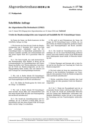 Abgeordnetenhaus Berlin – 17. Wahlperiode Drucksache 17 / 17 746 8. Inwiefern hat der Senat in Form von Rundschrei- ben, Weisungen, Empfehlungen oder Hinweisen die Be- zirke über die Umsetzung der oben genannten Urteile des Bundessozialgerichts informiert (bitte im Originalwortlaut beifügen)? Zu 8.: Die Sozialämter sind zunächst durch ein Infor- mationsschreiben (Anlage 3) allgemein unterrichtet wor- den. Konkrete Hinweise an die Sozialämter können erst nach Vorliegen und Auswertung der vollständigen Ur- teilsbegründung gegeben werden. Berlin, den 01. Februar 2016 In Vertretung Dirk G e r s t l e _____________________________ Senatsverwaltung für Gesundheit und Soziales (Eingang beim Abgeordnetenhaus am 04. Feb. 2016) 2