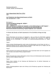 Drucksache 18 / 20 411 Schriftliche Anfrage 18. Wahlperiode Schriftliche Anfrage des Abgeordneten Maik Penn (CDU) vom 01. August 2019 (Eingang beim Abgeordnetenhaus am 02. August 2019) zum Thema: „Lärmschutz im Umfeld der Autobahn und der Bahnanlagen in Alt-Treptow“ – Kenntnis, Senatszuständigkeit und Umsetzung des Beschlusses der Bezirksverordnetenversammlung Treptow-Köpenick vom 16.05.2019 und Antwort vom 15. August 2019 (Eingang beim Abgeordnetenhaus am 20. Aug. 2019) Die Drucksachen des Abgeordnetenhauses sind bei der Kulturbuch-Verlag GmbH zu beziehen. Hausanschrift: Sprosserweg 3, 12351 Berlin-Buckow · Postanschrift: Postfach 47 04 49, 12313 Berlin, Telefon: 6 61 84 84; Telefax: 6 61 78 28.